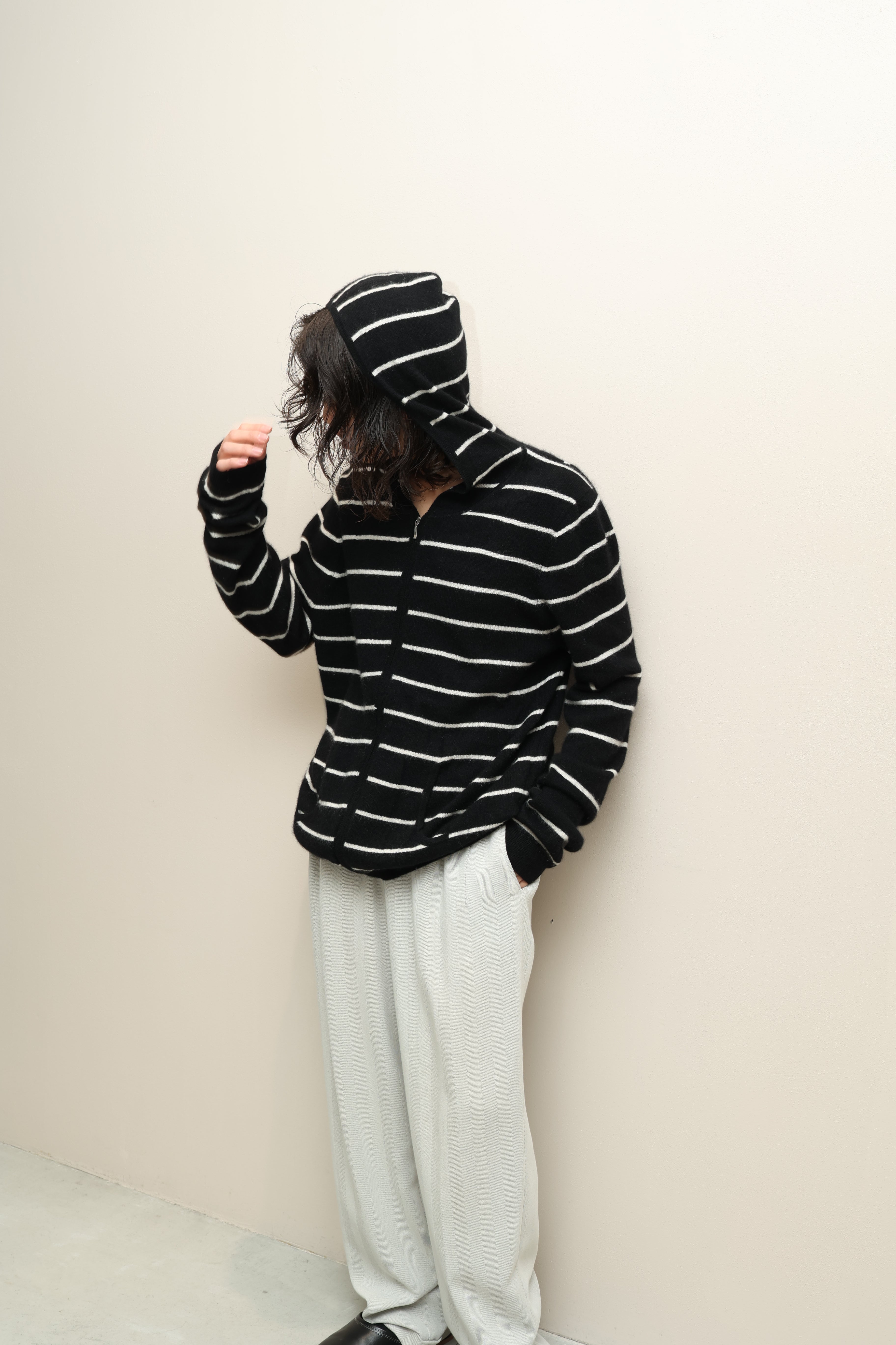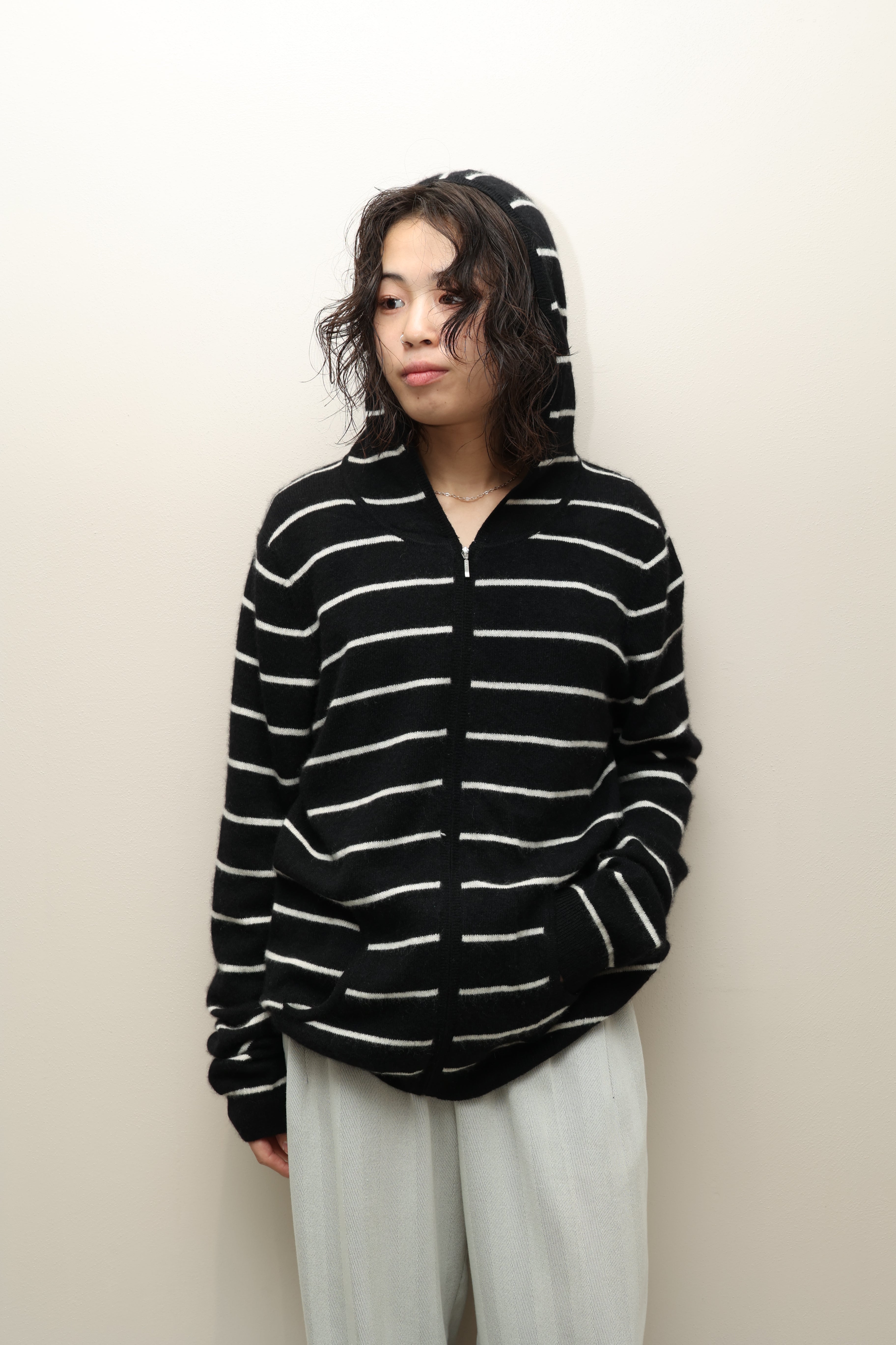 00's US label - cashmere knit zip-up hoodie