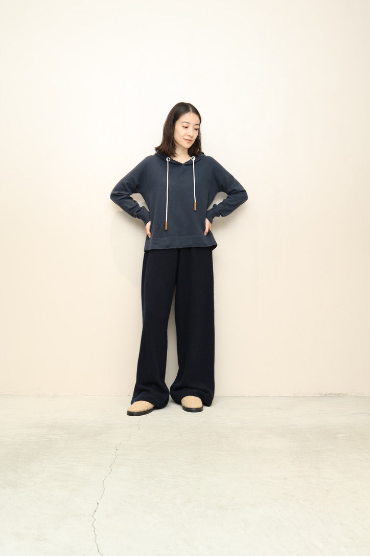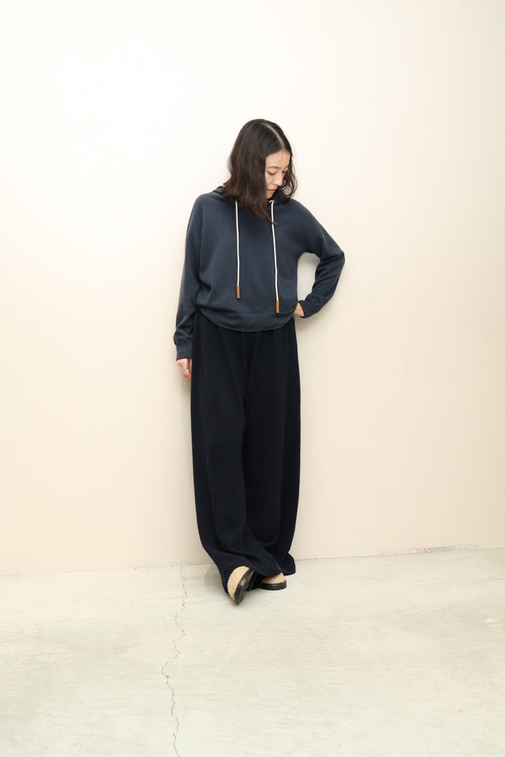 コンパクトめなサイズ感のカシミヤニットフーディー