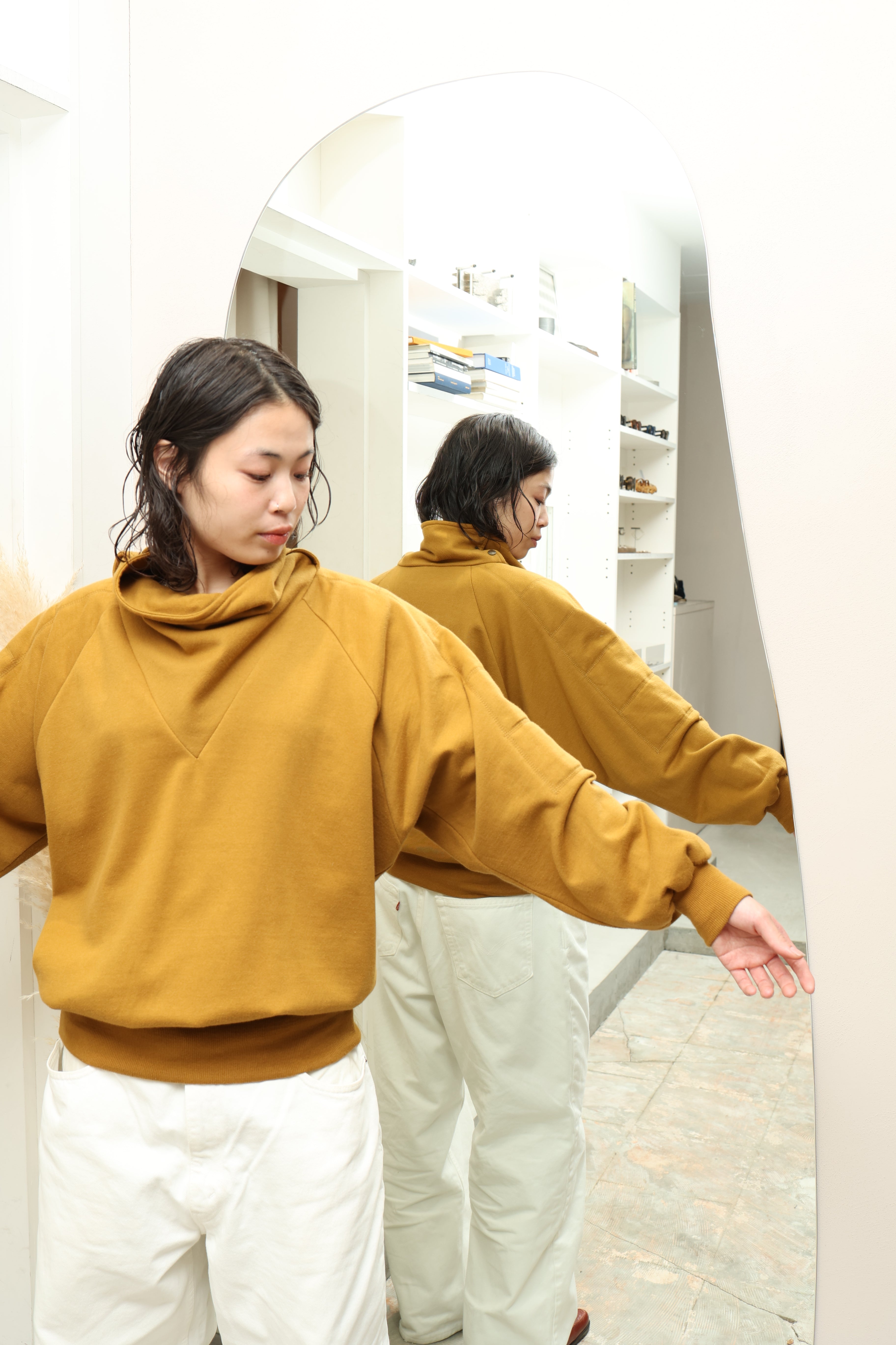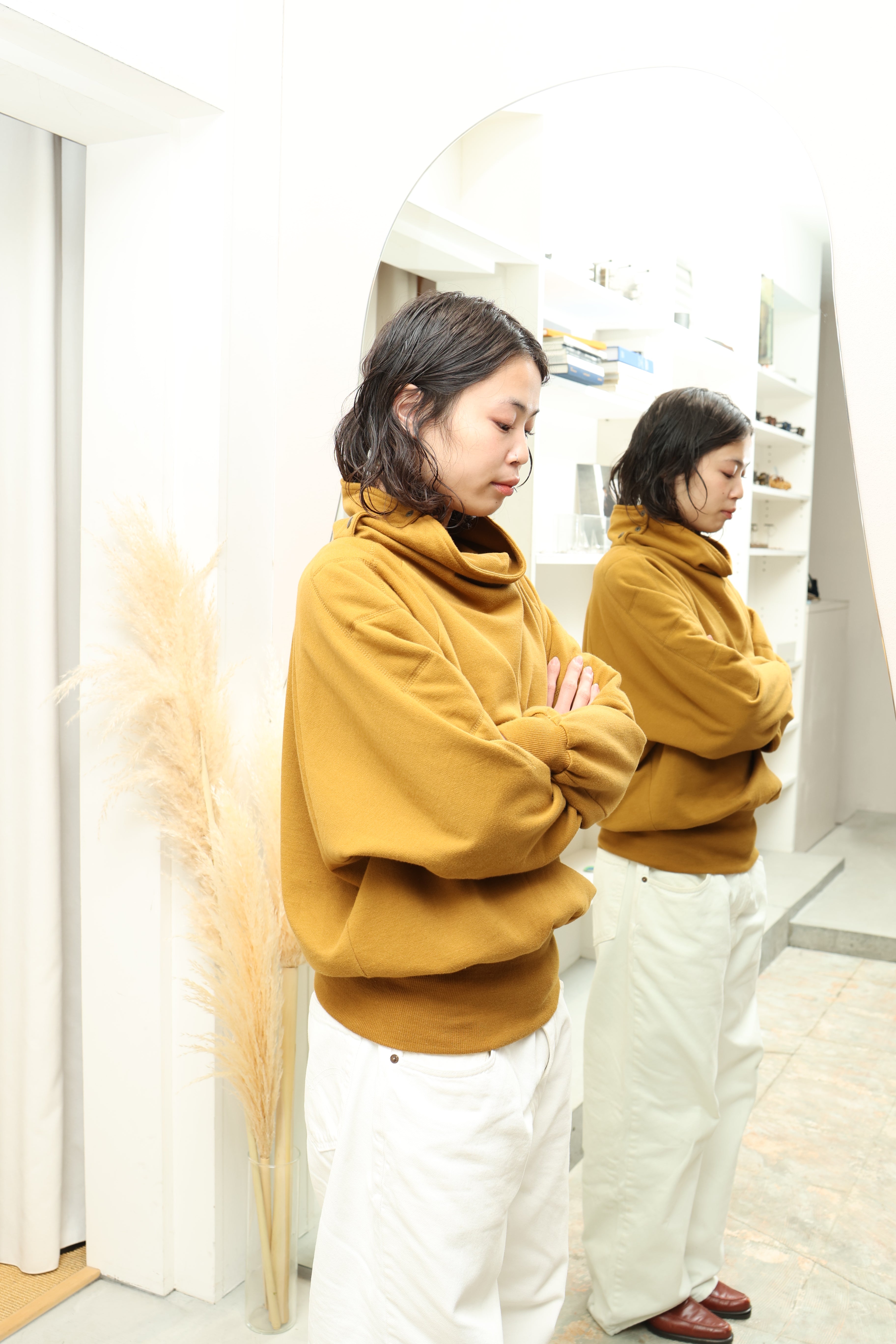 立体的な首元や横に広がるようなヴォリューム感がキュートな特別なスウェットです