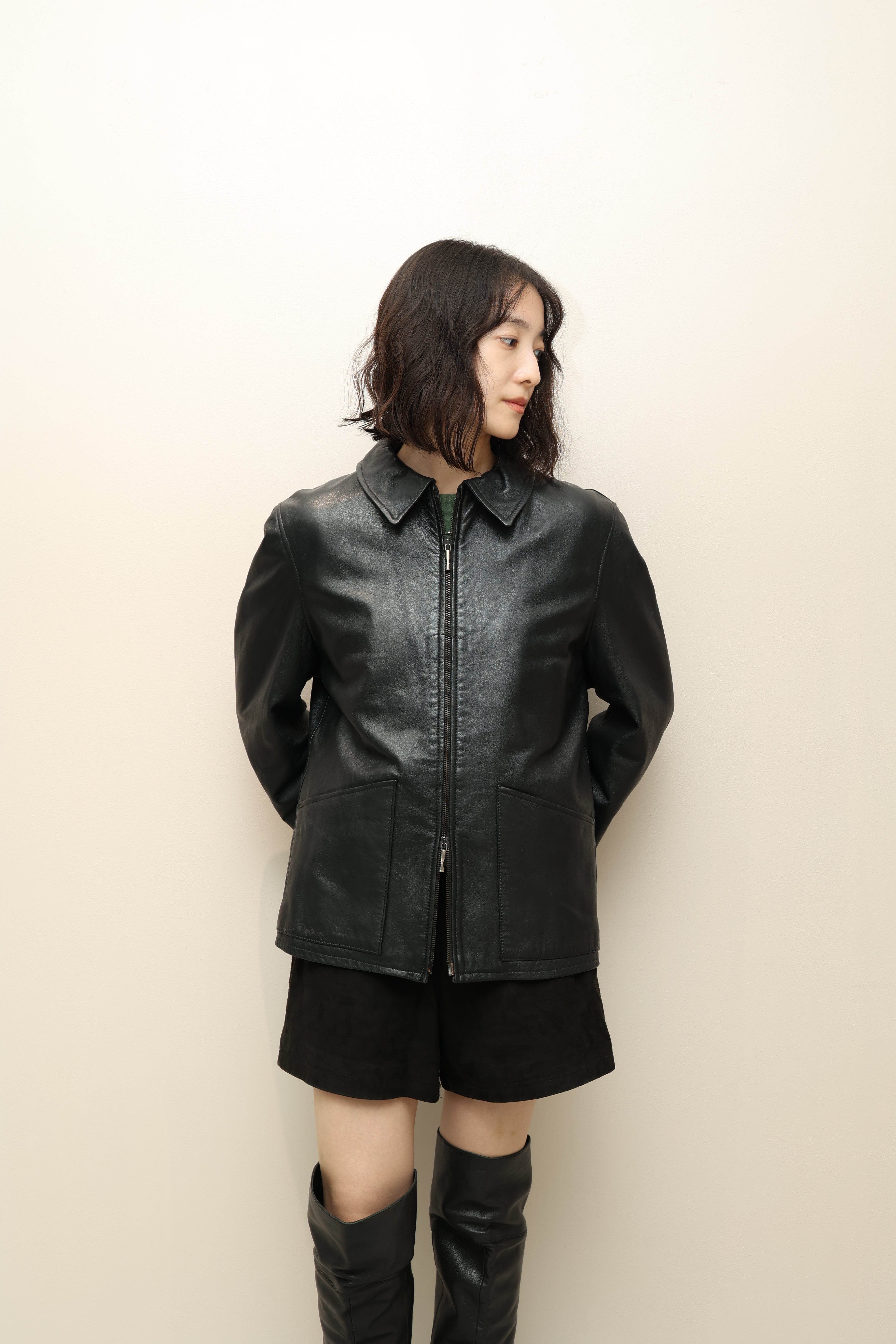 80-90's Italian label -leather zip-up jacket