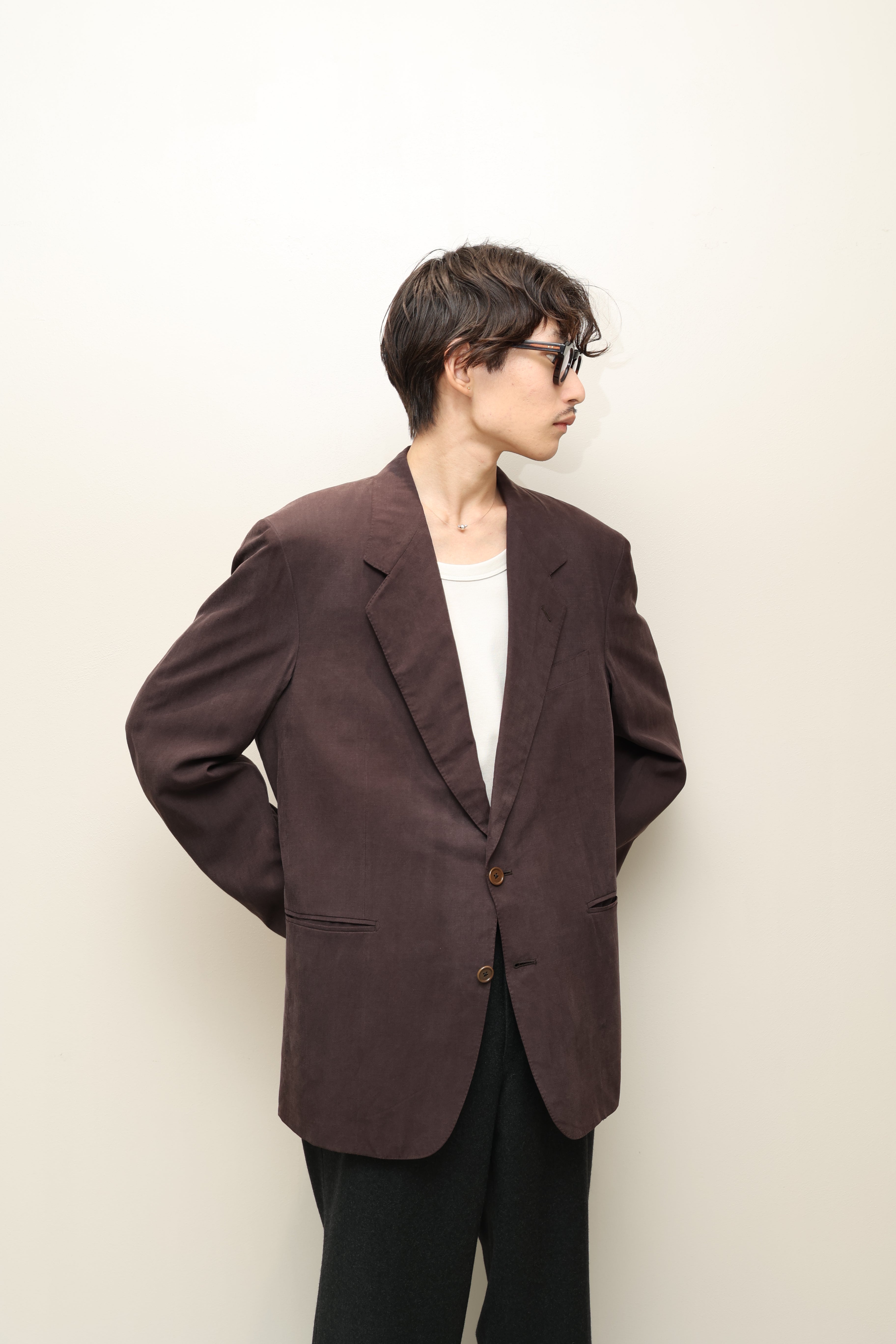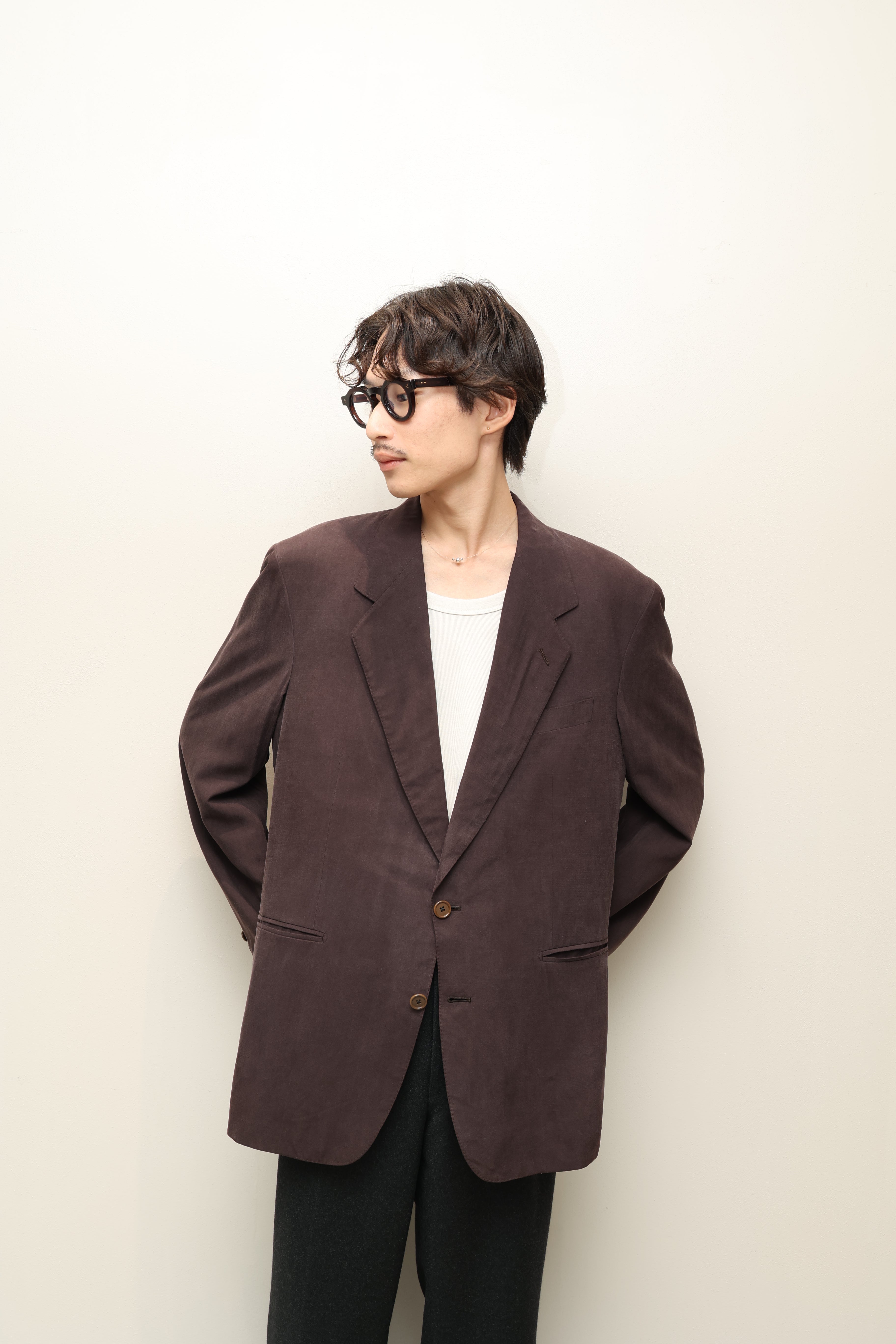 くすみブラウンパープルカラーのジャケットは、まさかのシルク100%シェル!