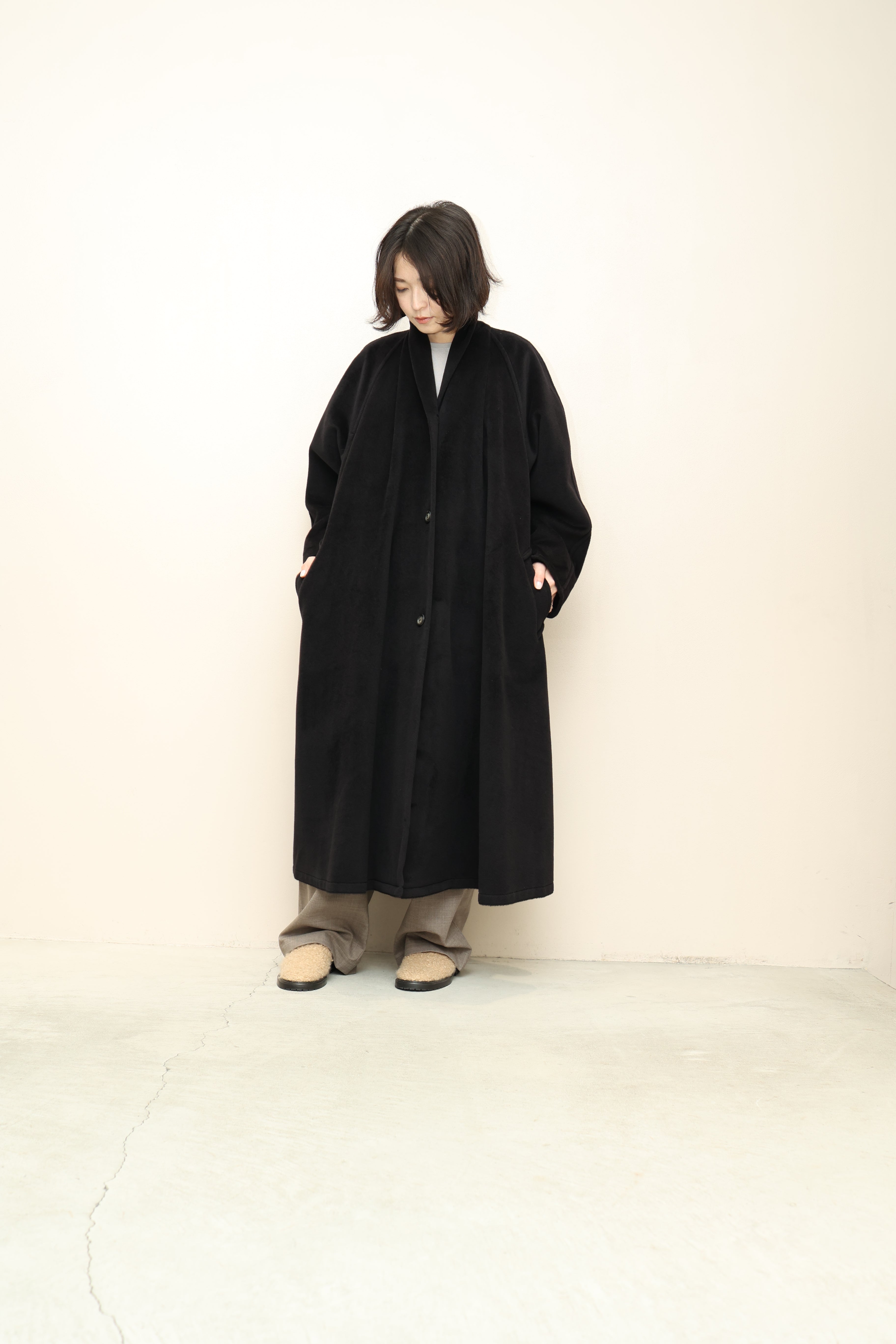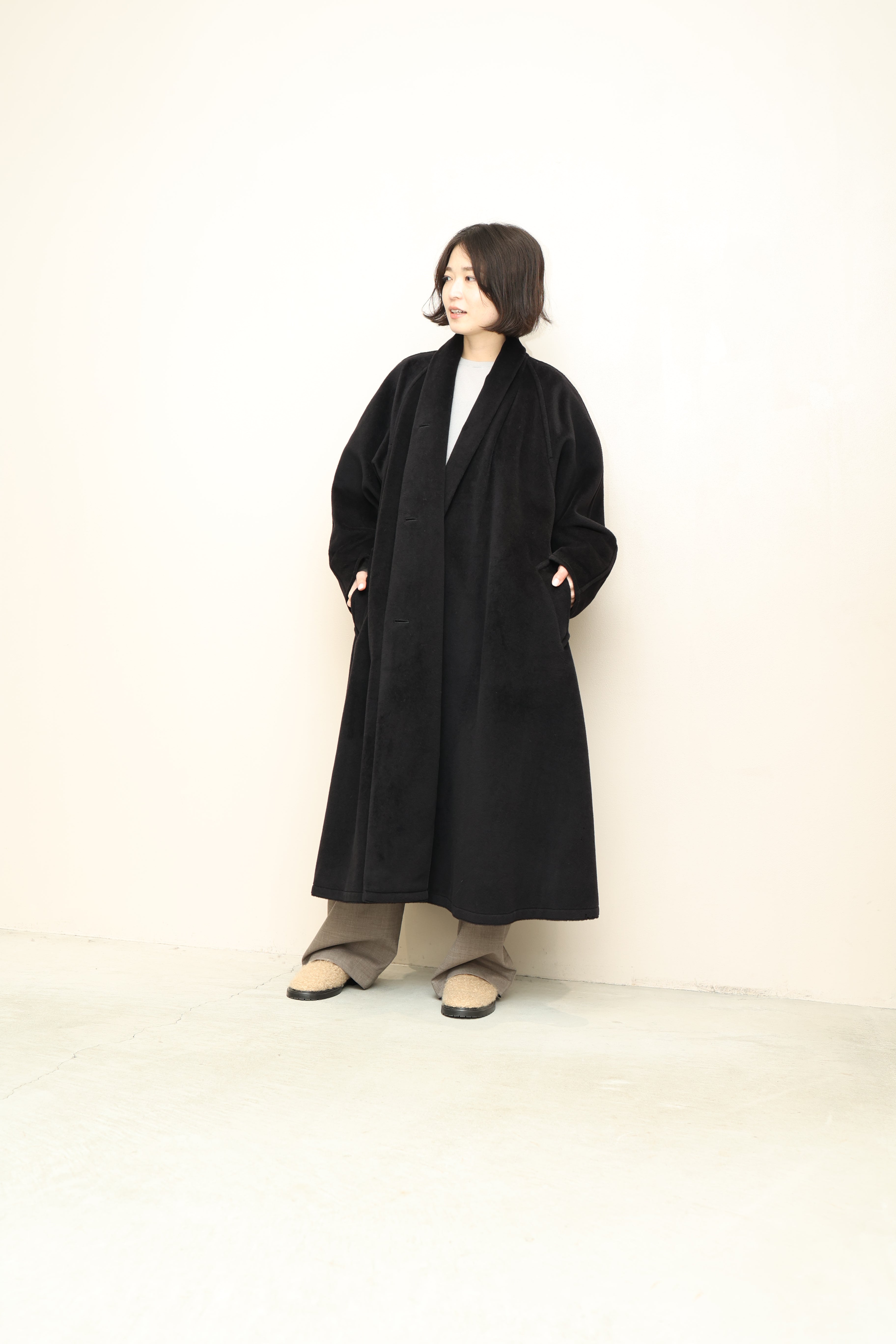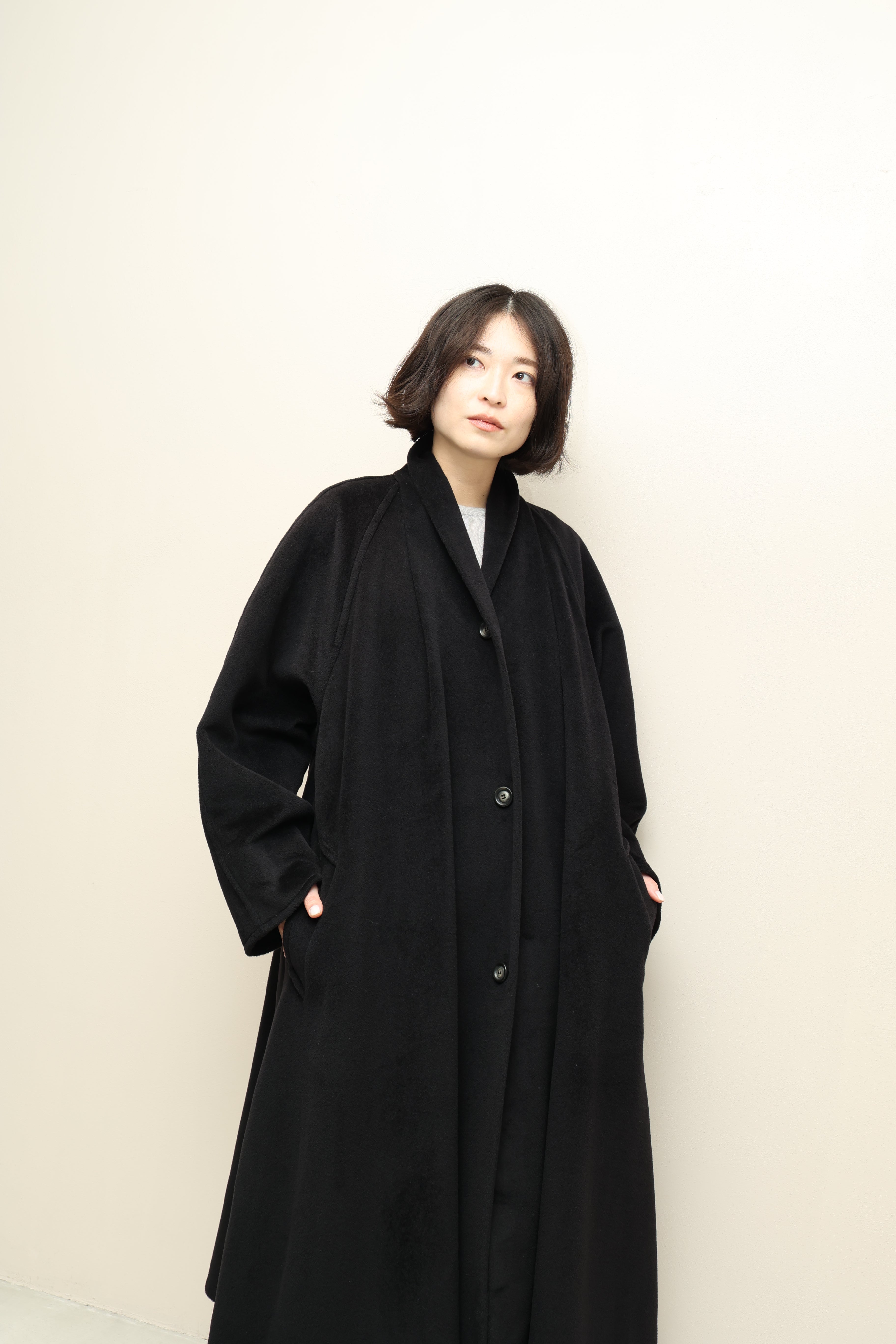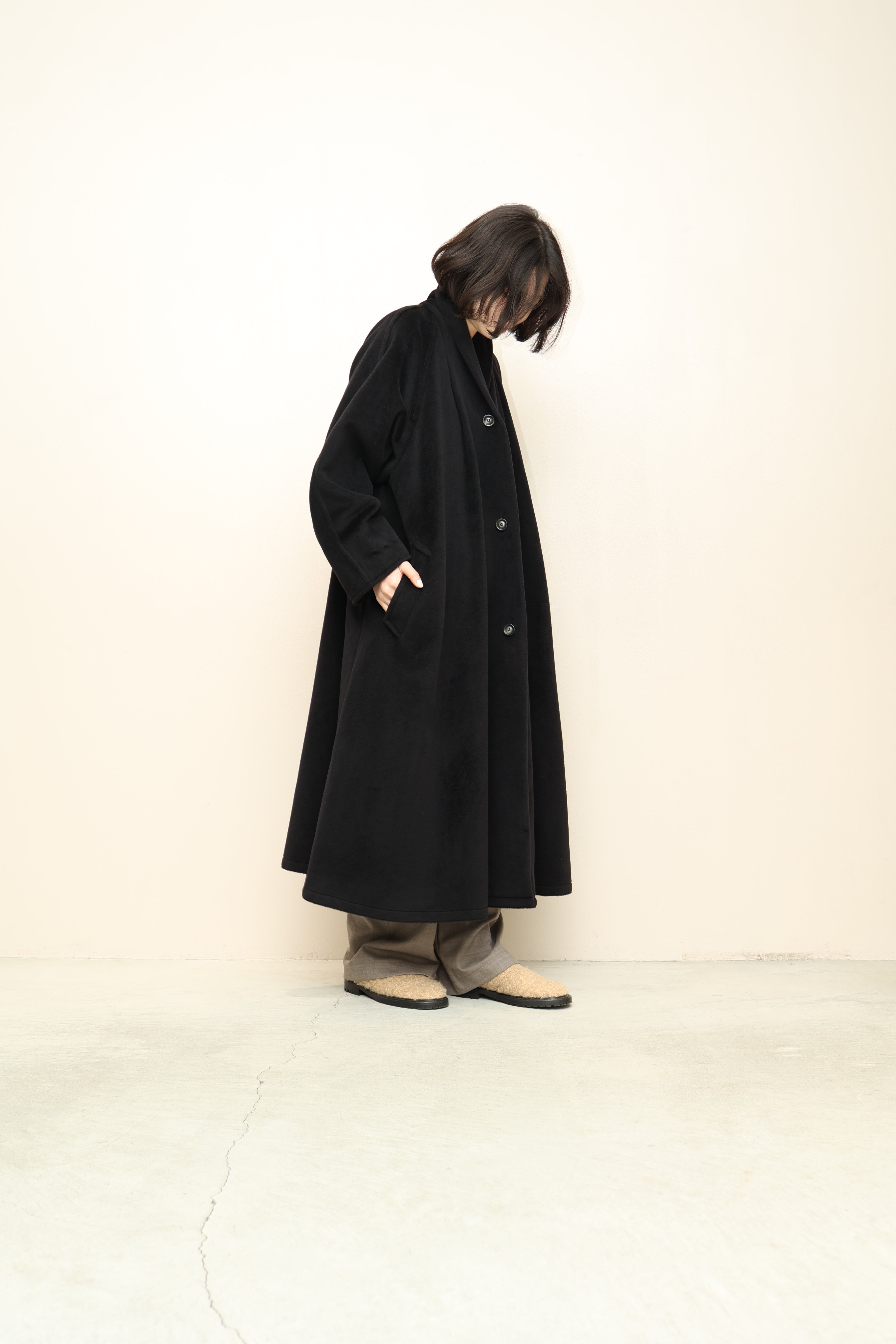 Max Maraらしい漆黒ウール生地を贅沢に使用したマキシ丈コート