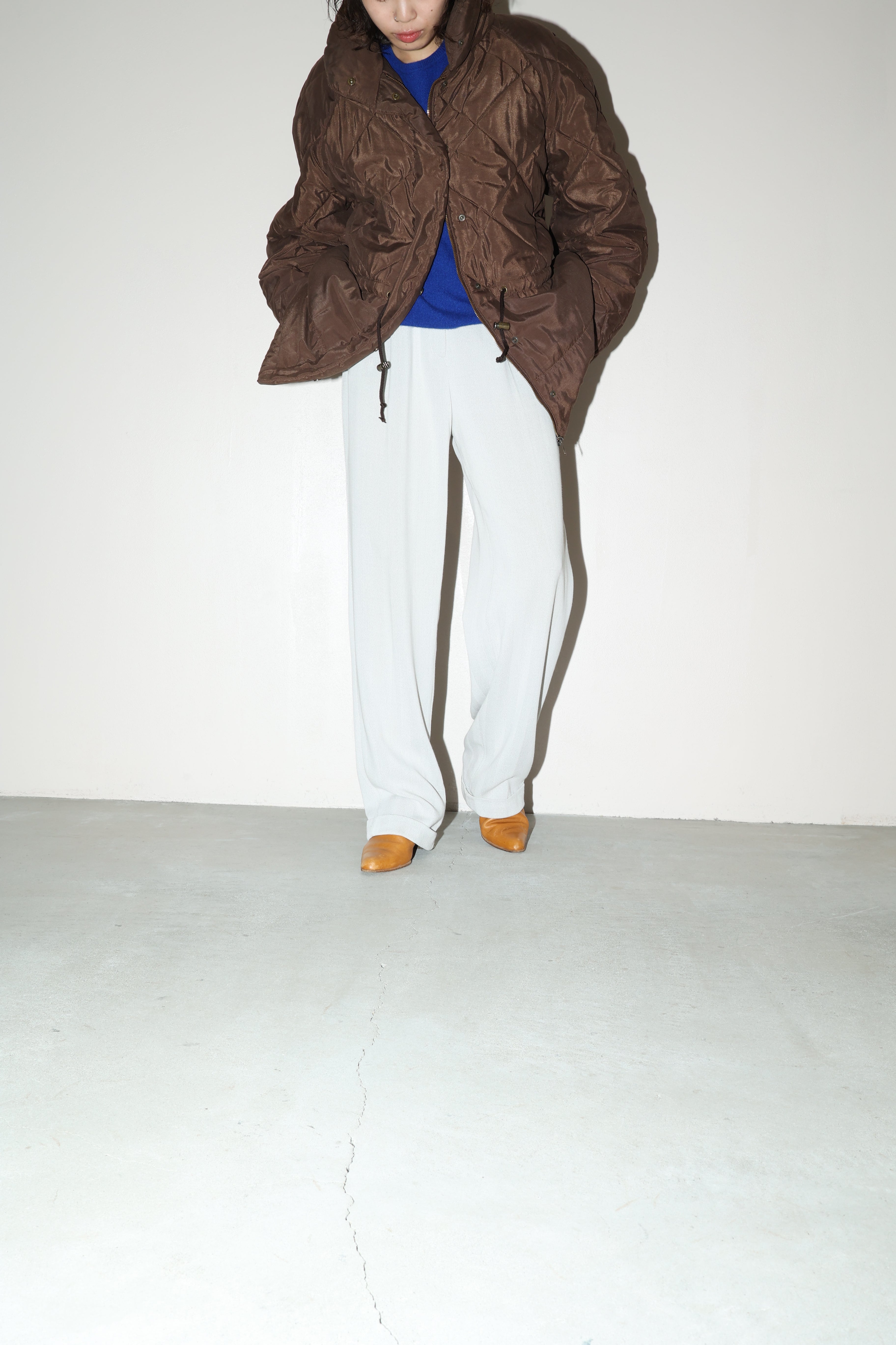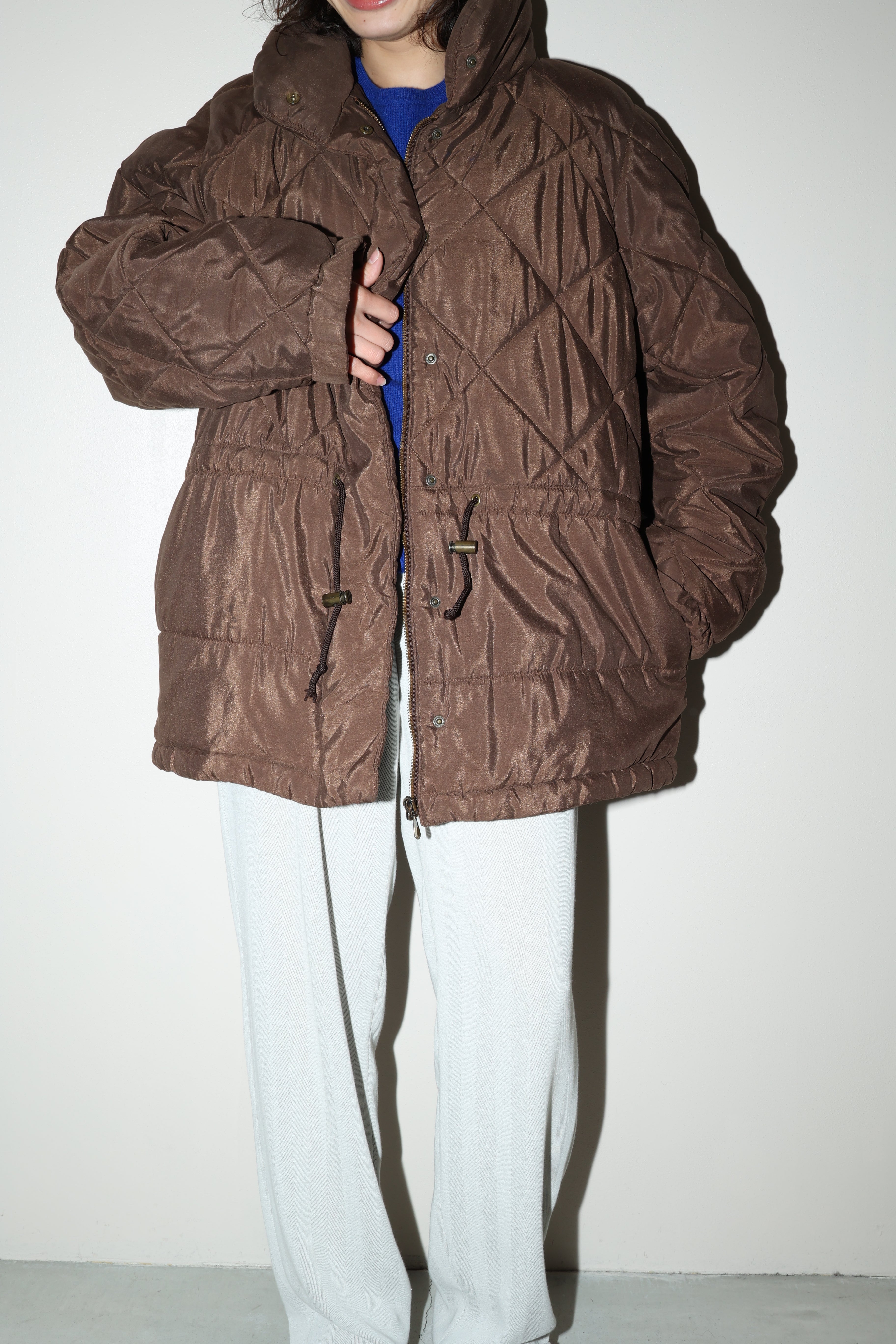 チョコレートブラウンカラーのキルティングジャケット