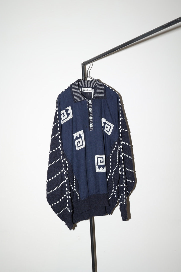 フロントがリネンシャツ素材に切り替えられたニットポロ