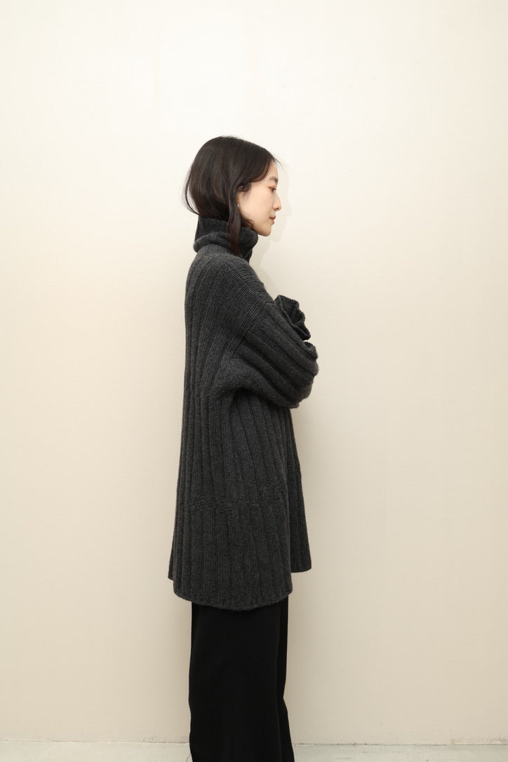 ハリぬきリブニットに、控えめな編みでのアクセントパターン