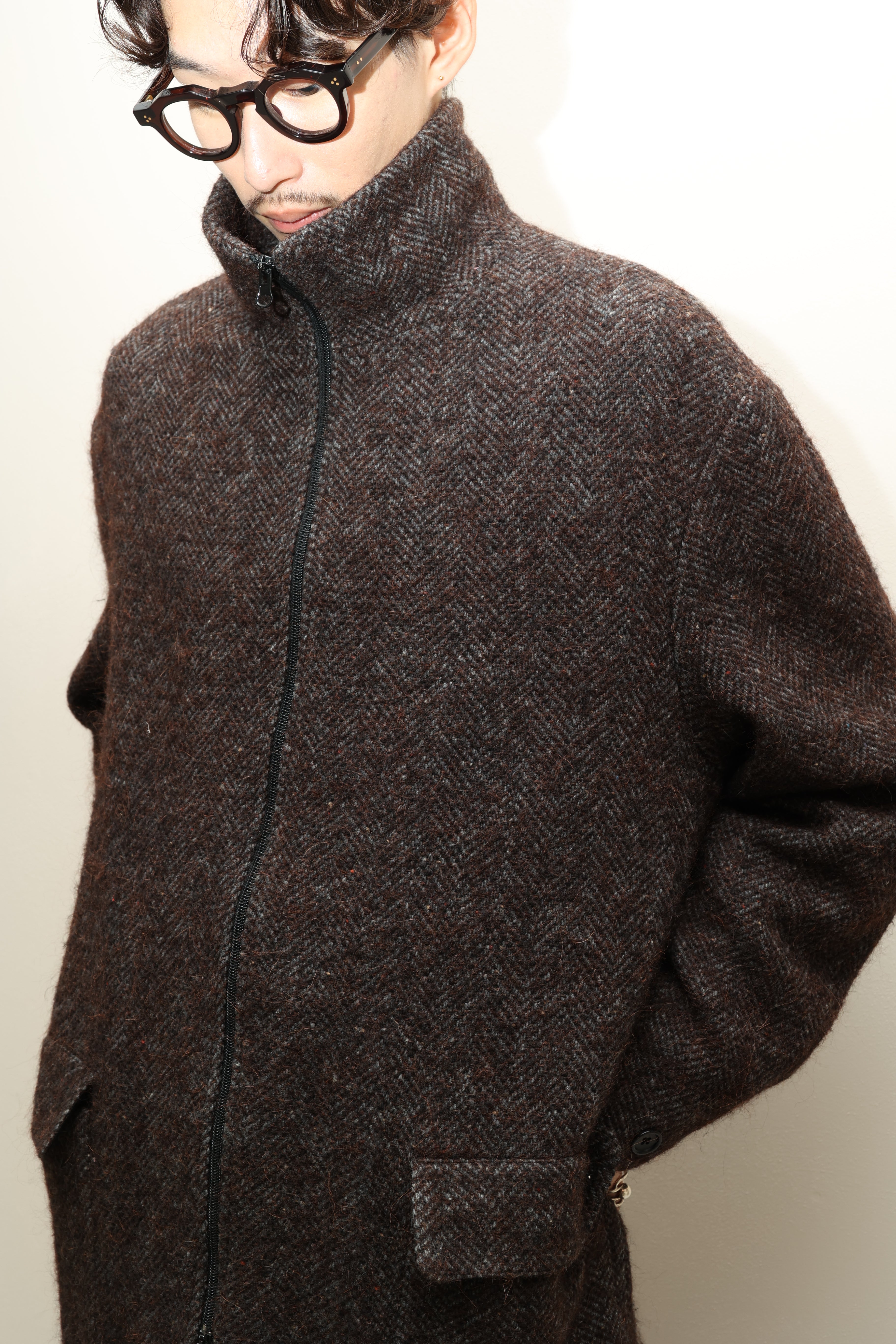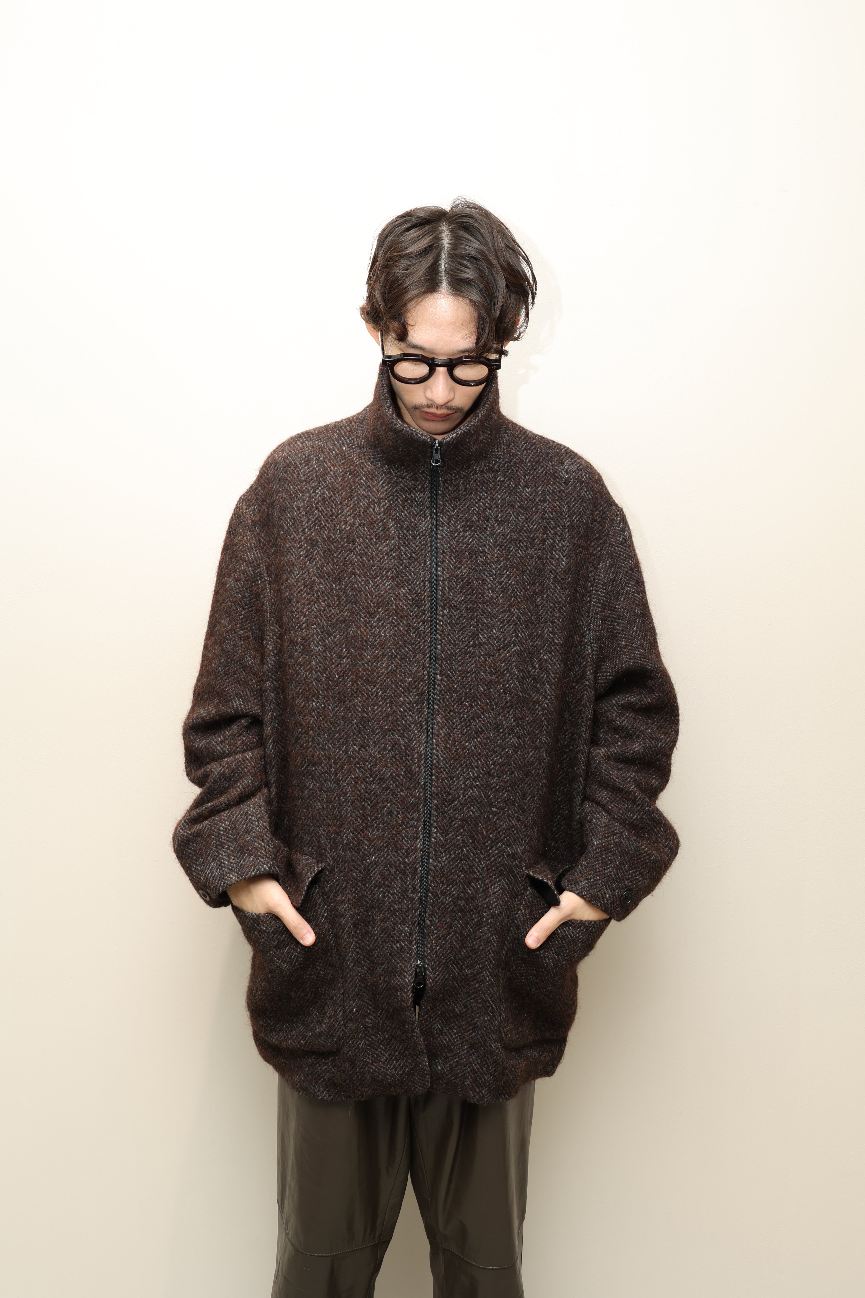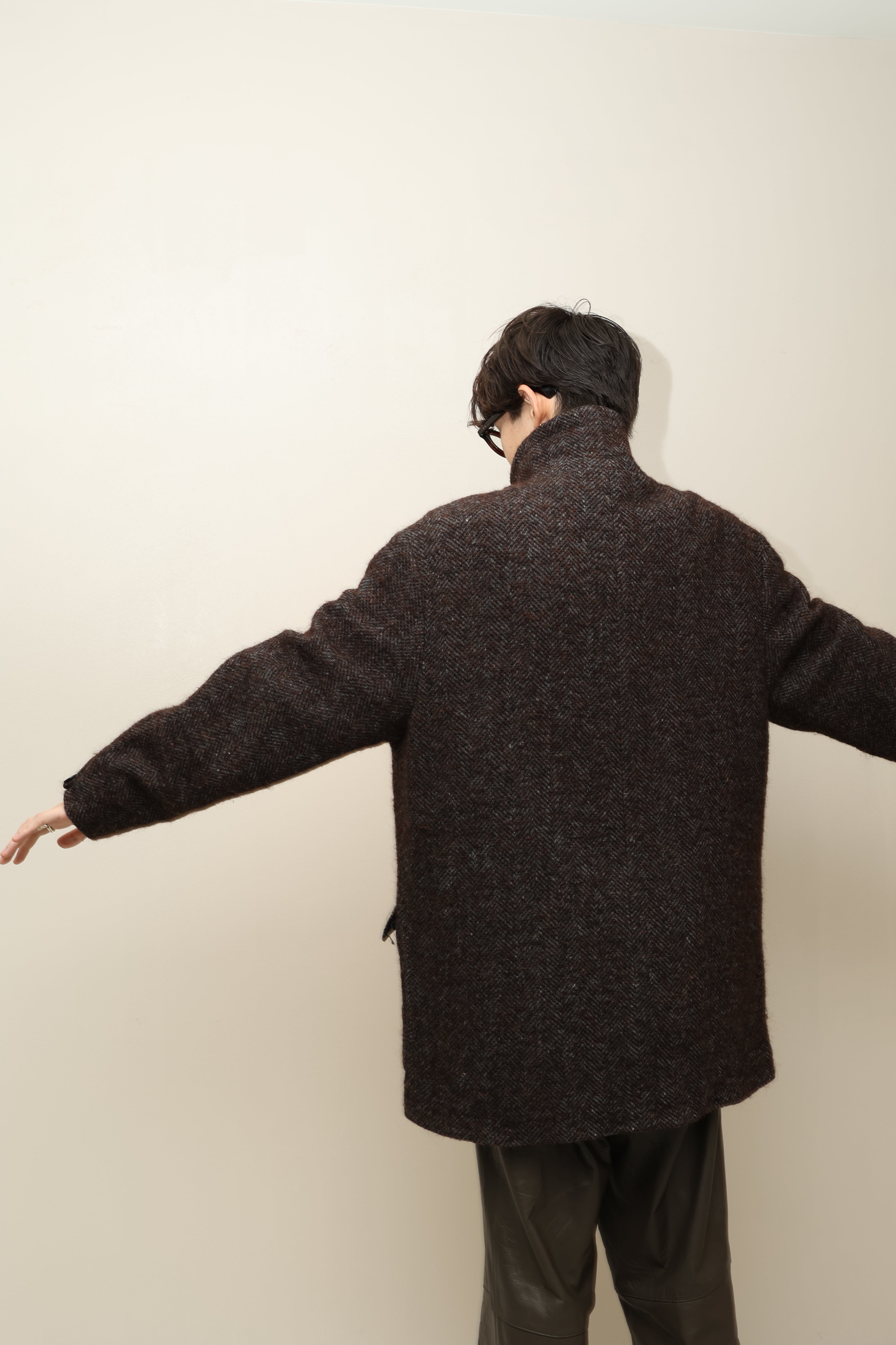 c90's CHRISTIAN AUJARD HOMME - mohair mixed wool zip-up hi-neck middle coat