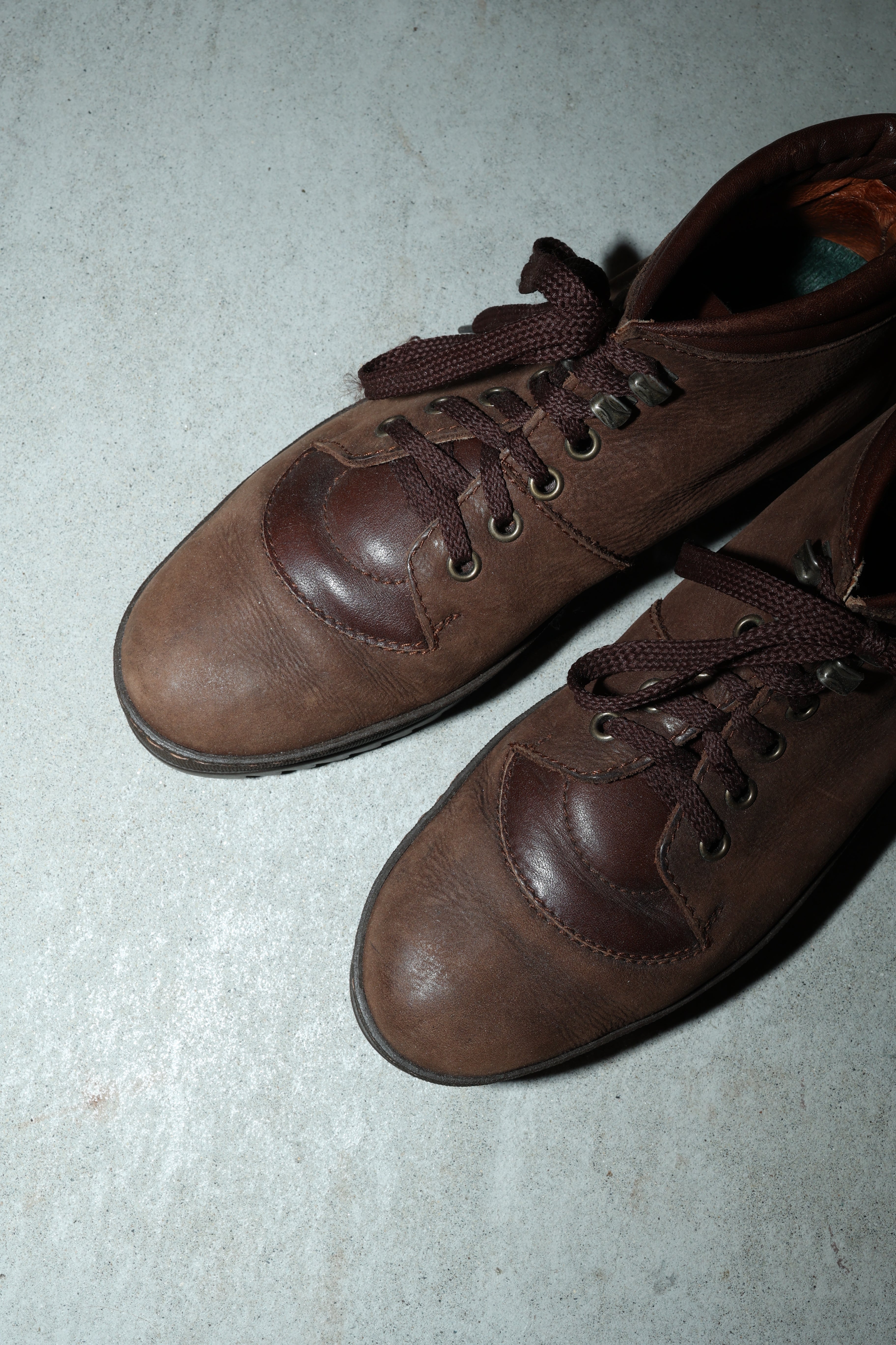 European label - leather hi-cut trekking sneakers