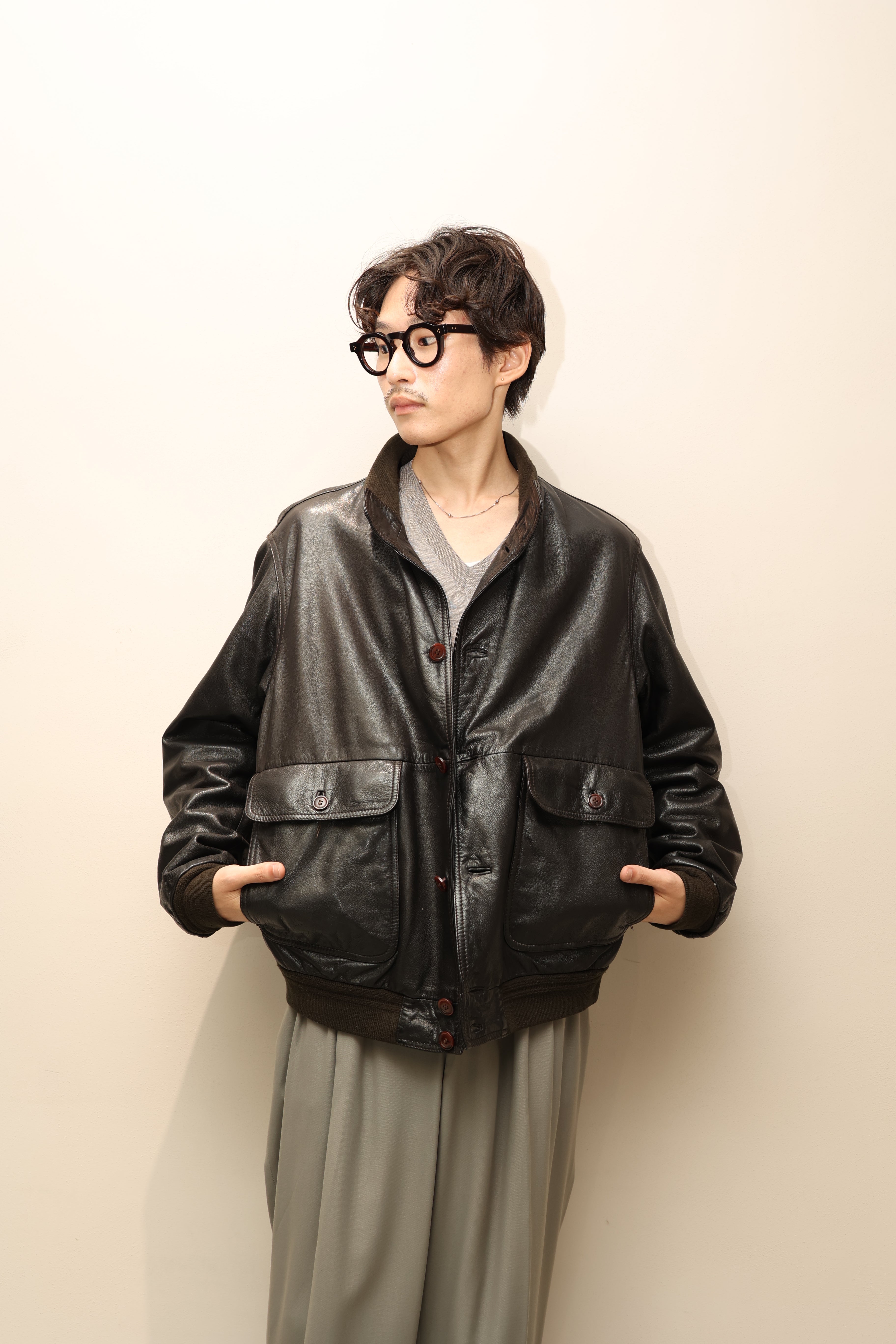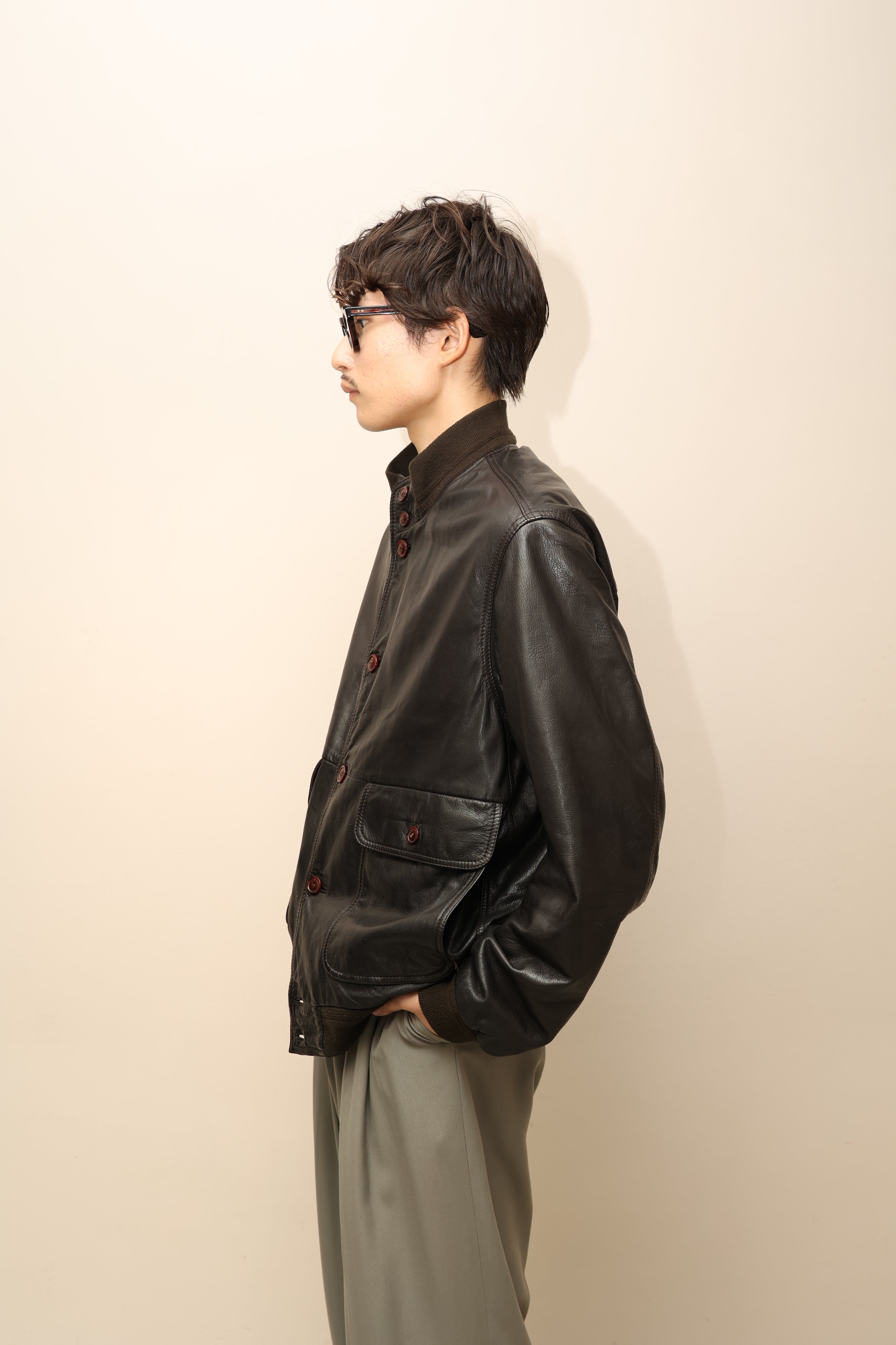 ダークダークブラウンカラーのヴァルスター型レザーブルゾン
