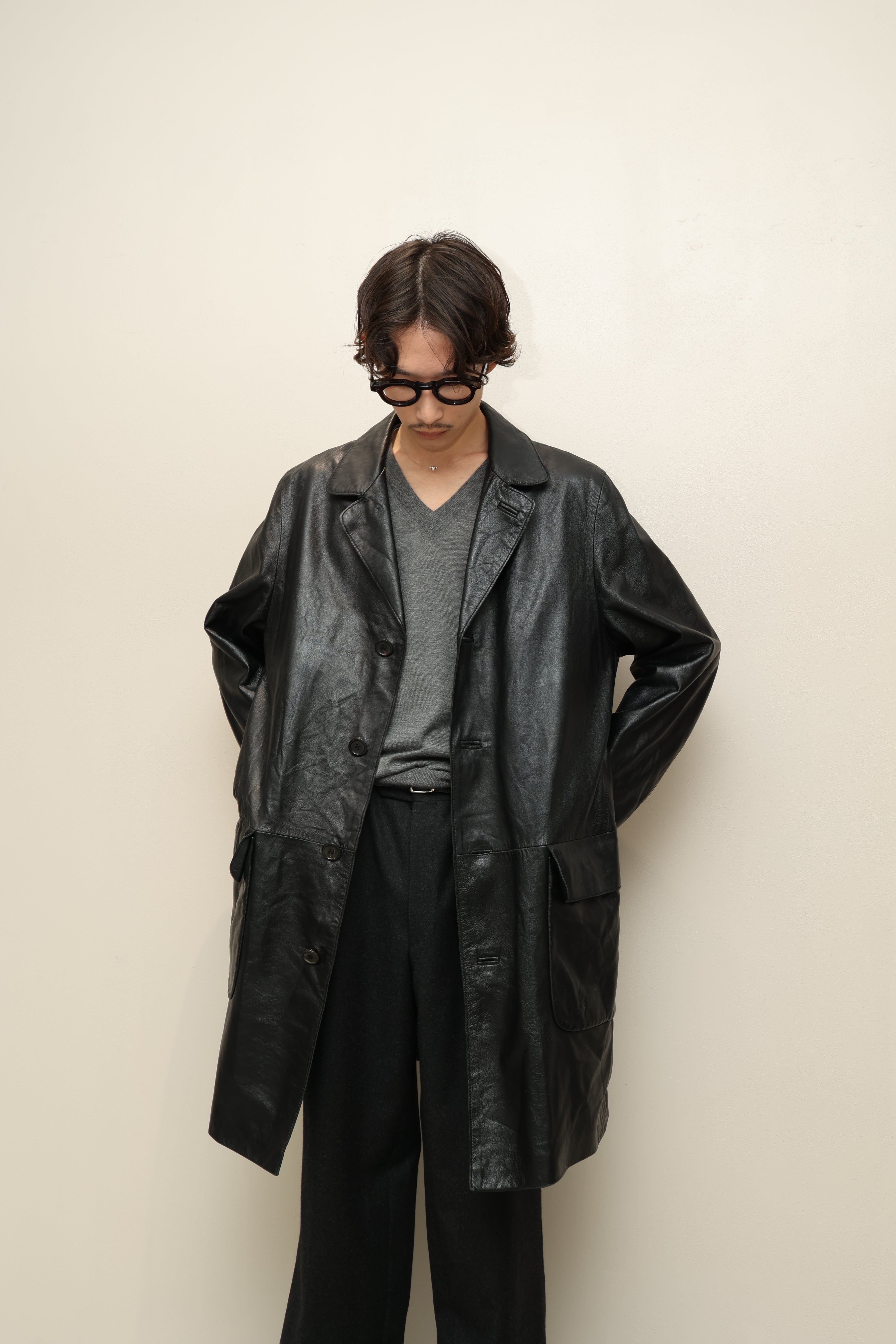 00's European label - leather I line middle coat