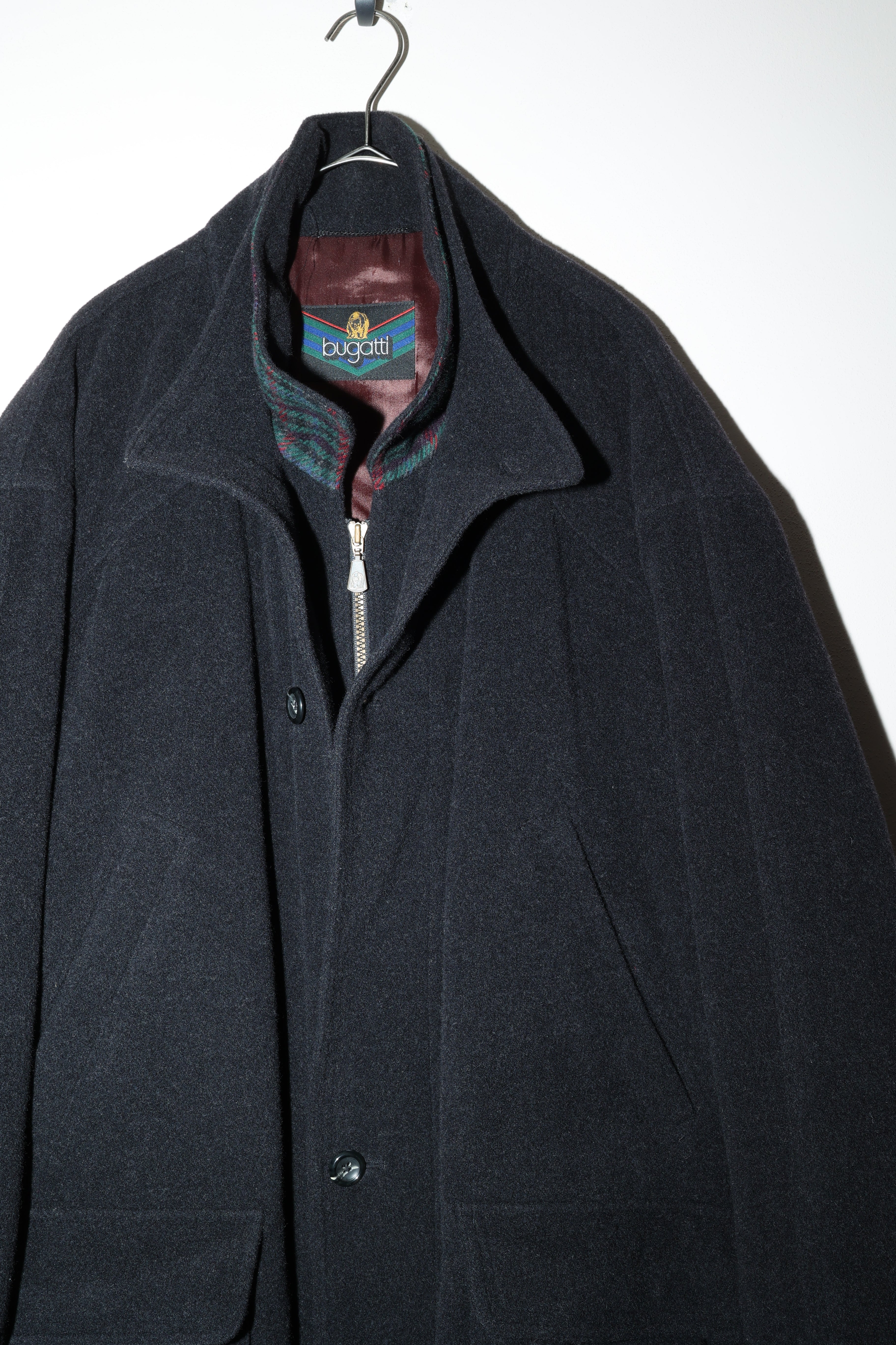 80-90’s BUGATTI - layered neck, wool hip-length coat