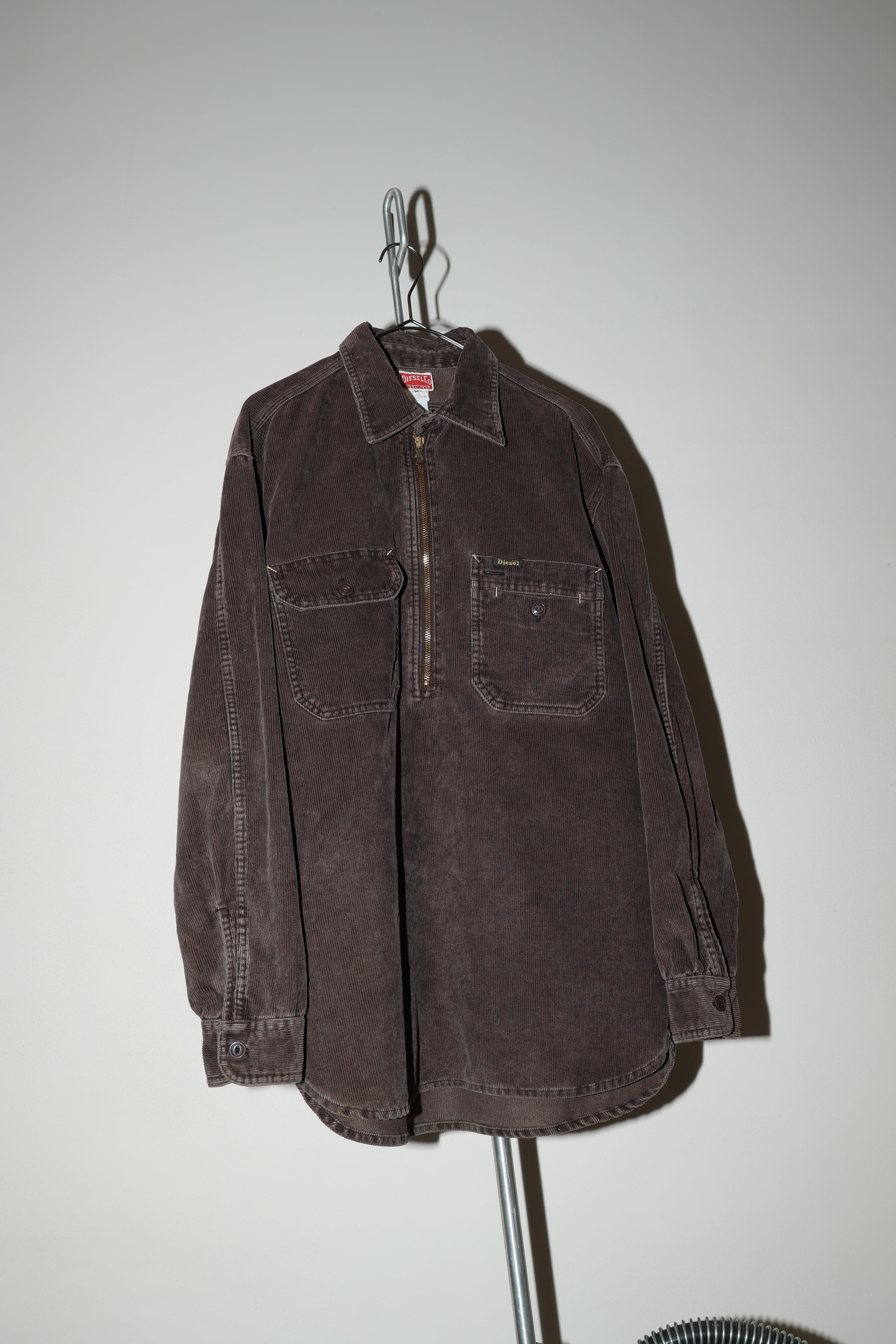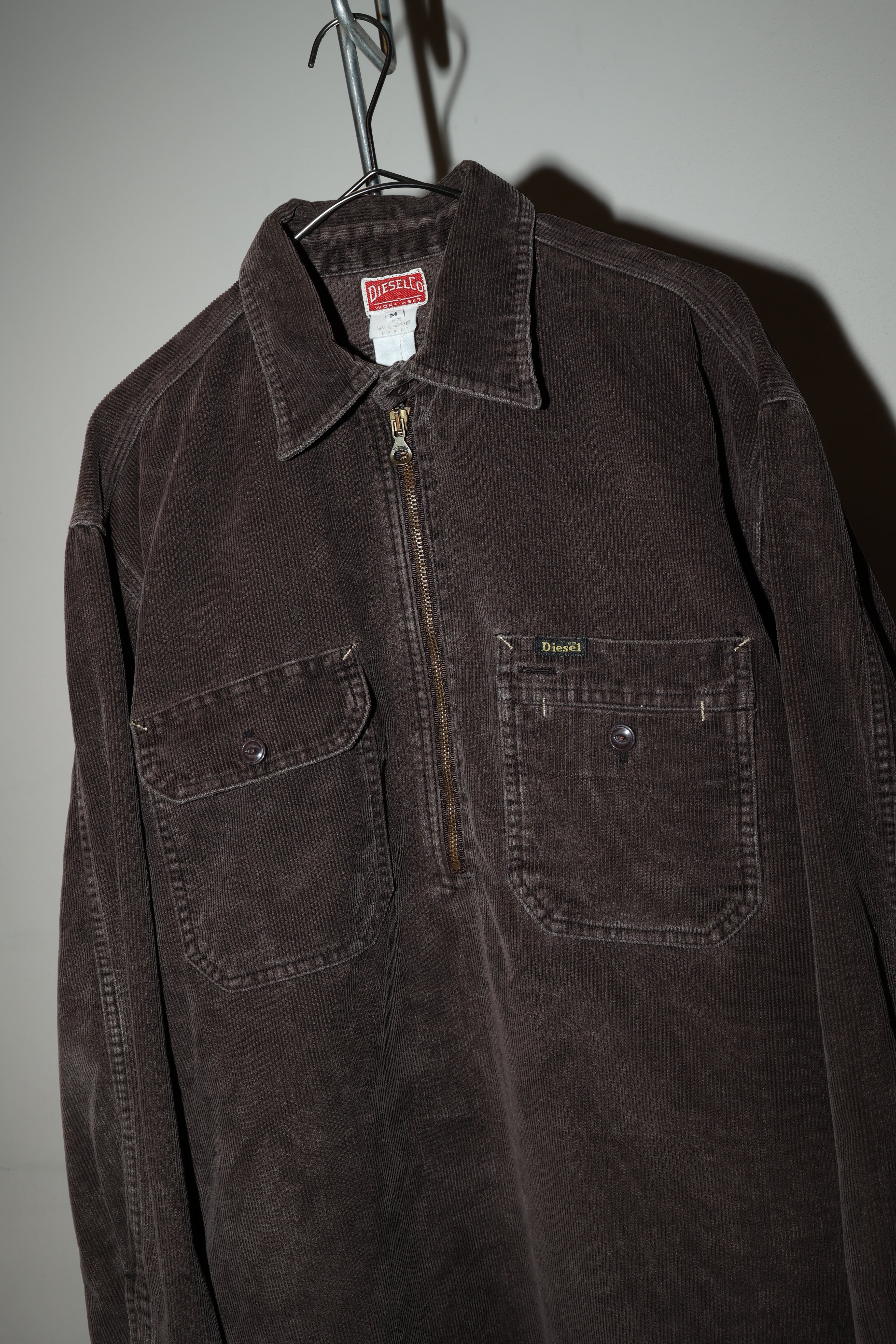 80-90's DIESEL - corduroy half-zip work shirt in brown