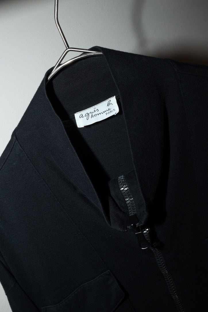 90-00's agnès b - cut&sewn fabric, wide boxy zip-up blouson