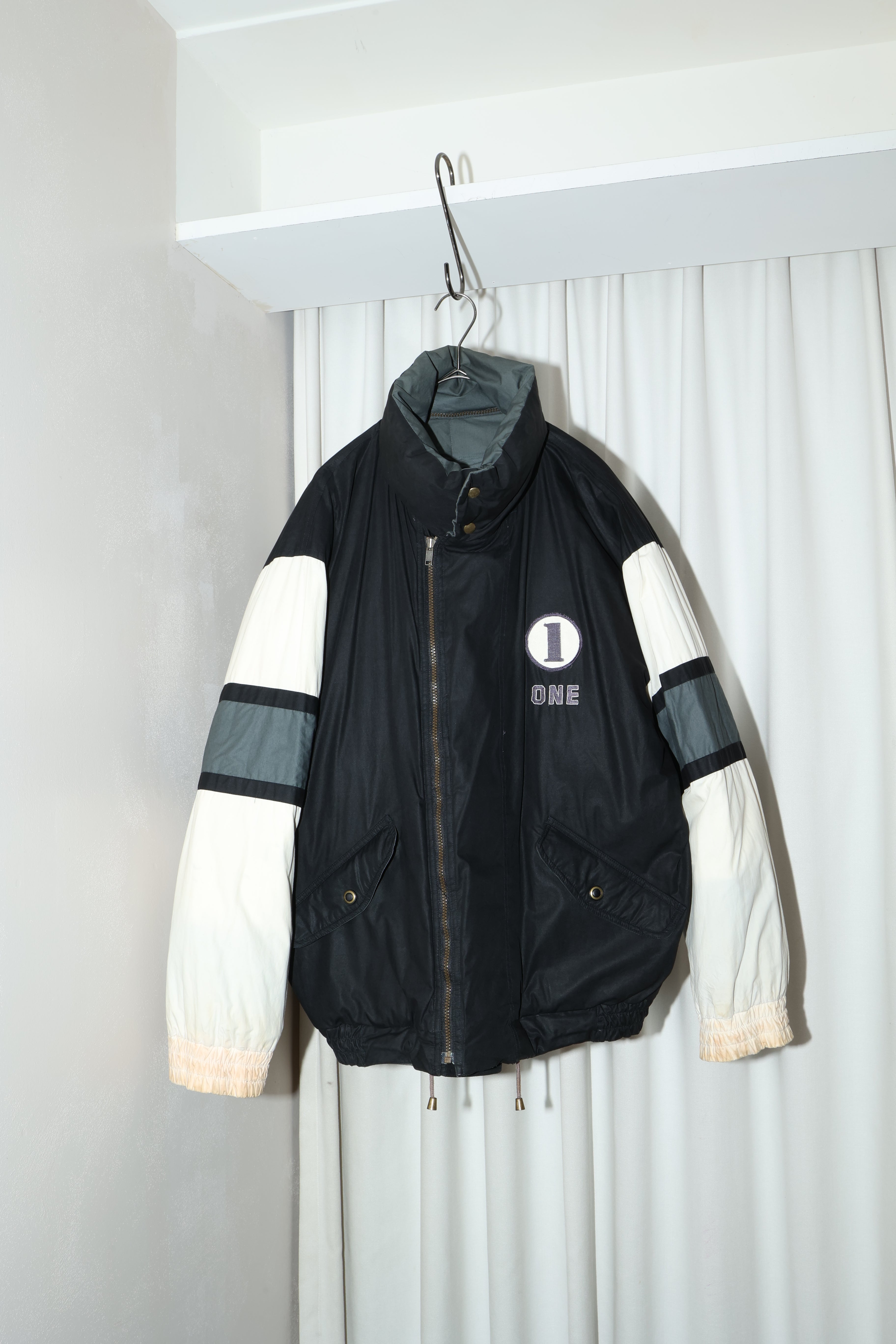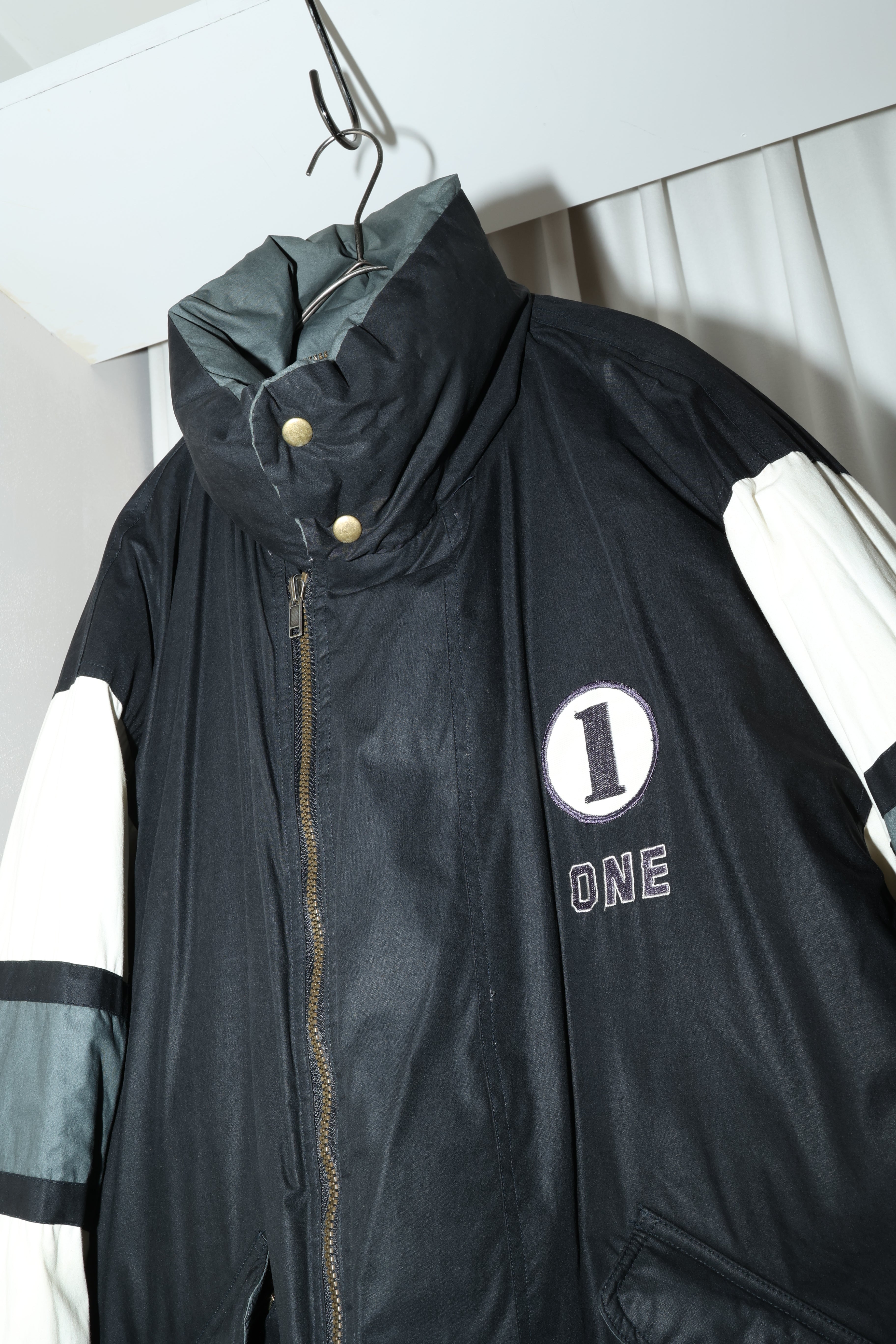 -condition  刺繍面の袖先に汚れ(変色あり)、単色グレー面のフード欠損