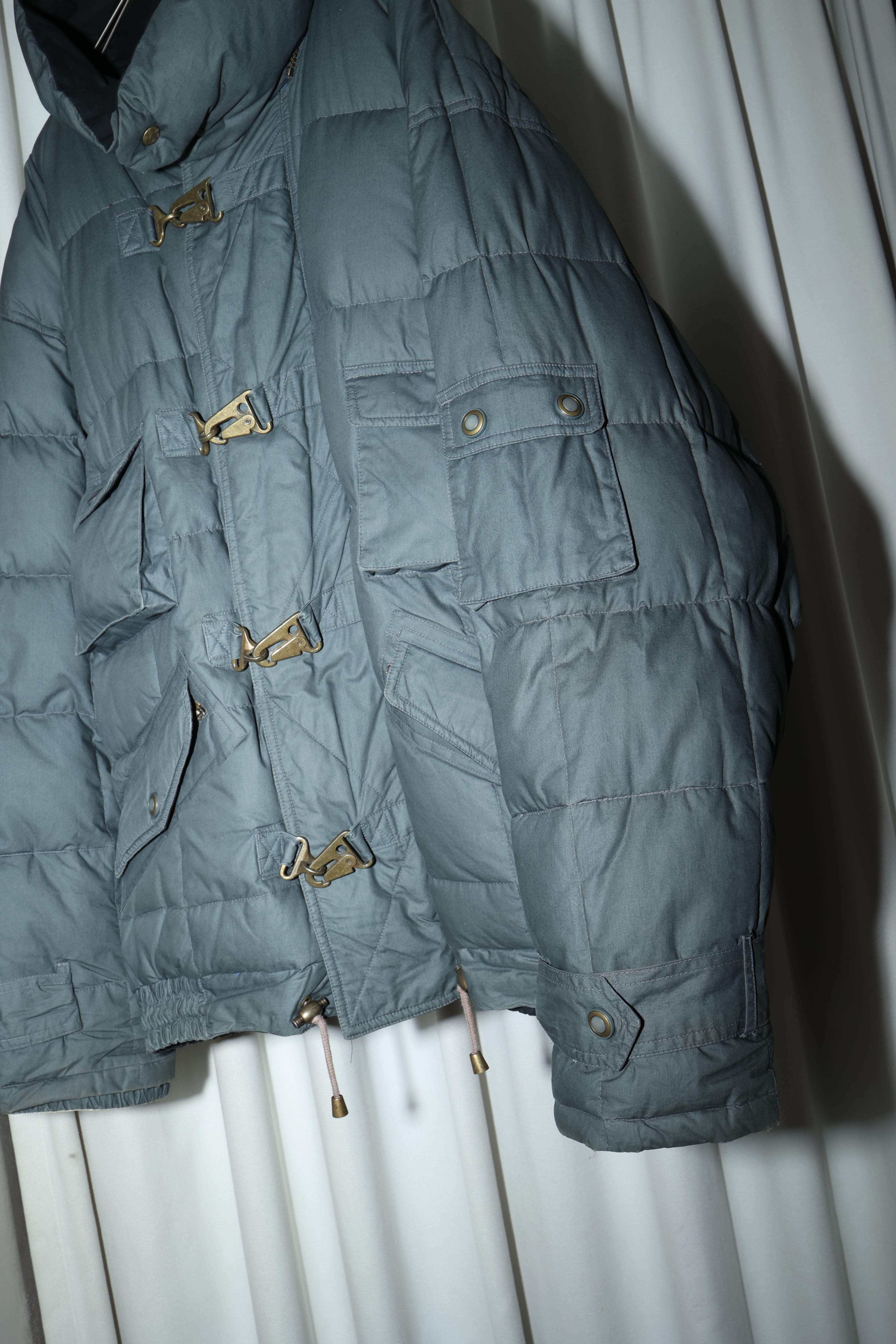 90’s DANIEL HECTEL - cotton shell, gimmick front detail down jacket in dusty gray color