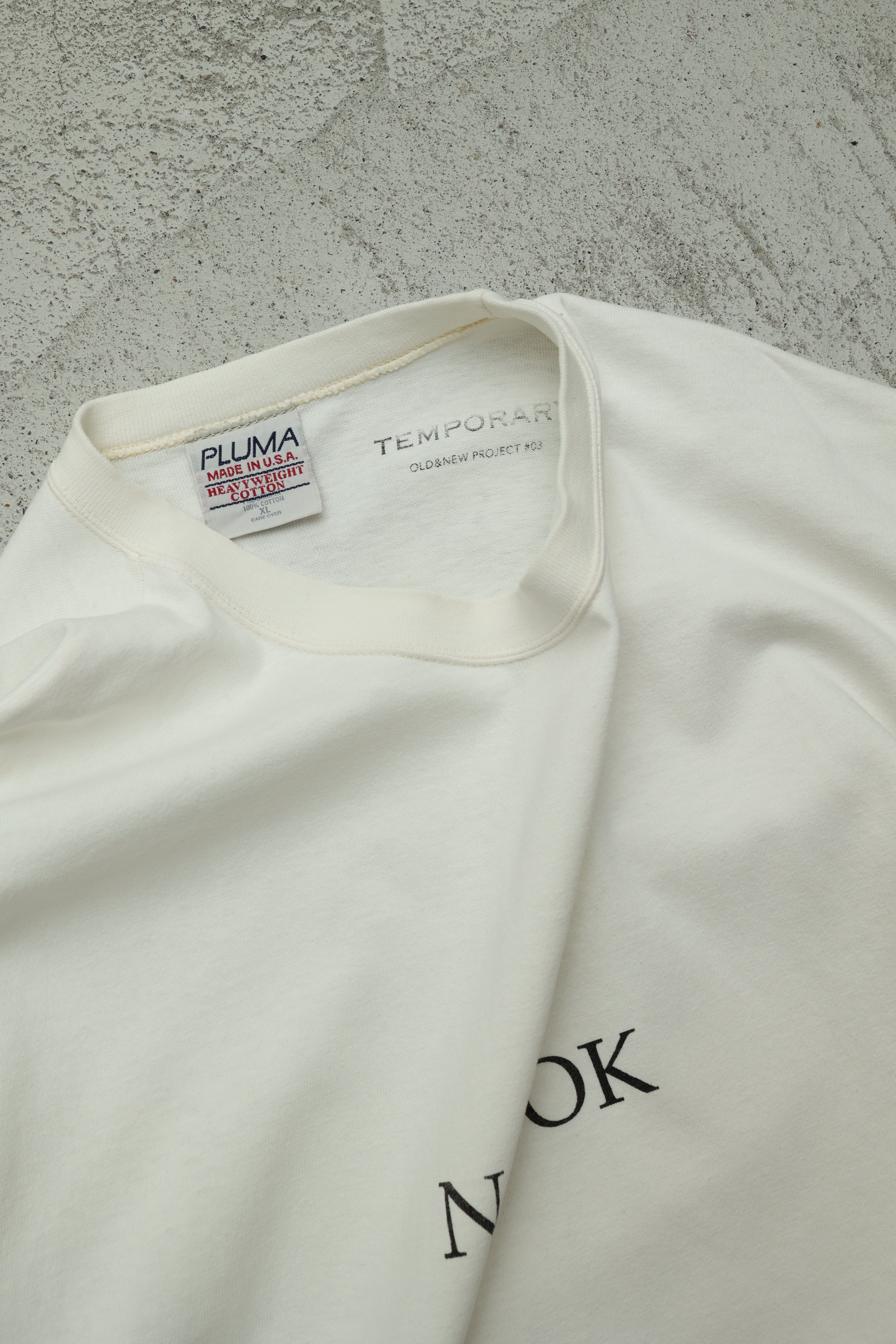 もう10年以上前、当時好きだった古着屋さんで買わせてもらった、「NOT OK」とだけプリントされていた古着のTシャツのアイデアをベースに、TEMPORARYなりのメッセージを込めてシルクスクリーンプリントでヴィンテージTシャツ25枚にプリントを施しました