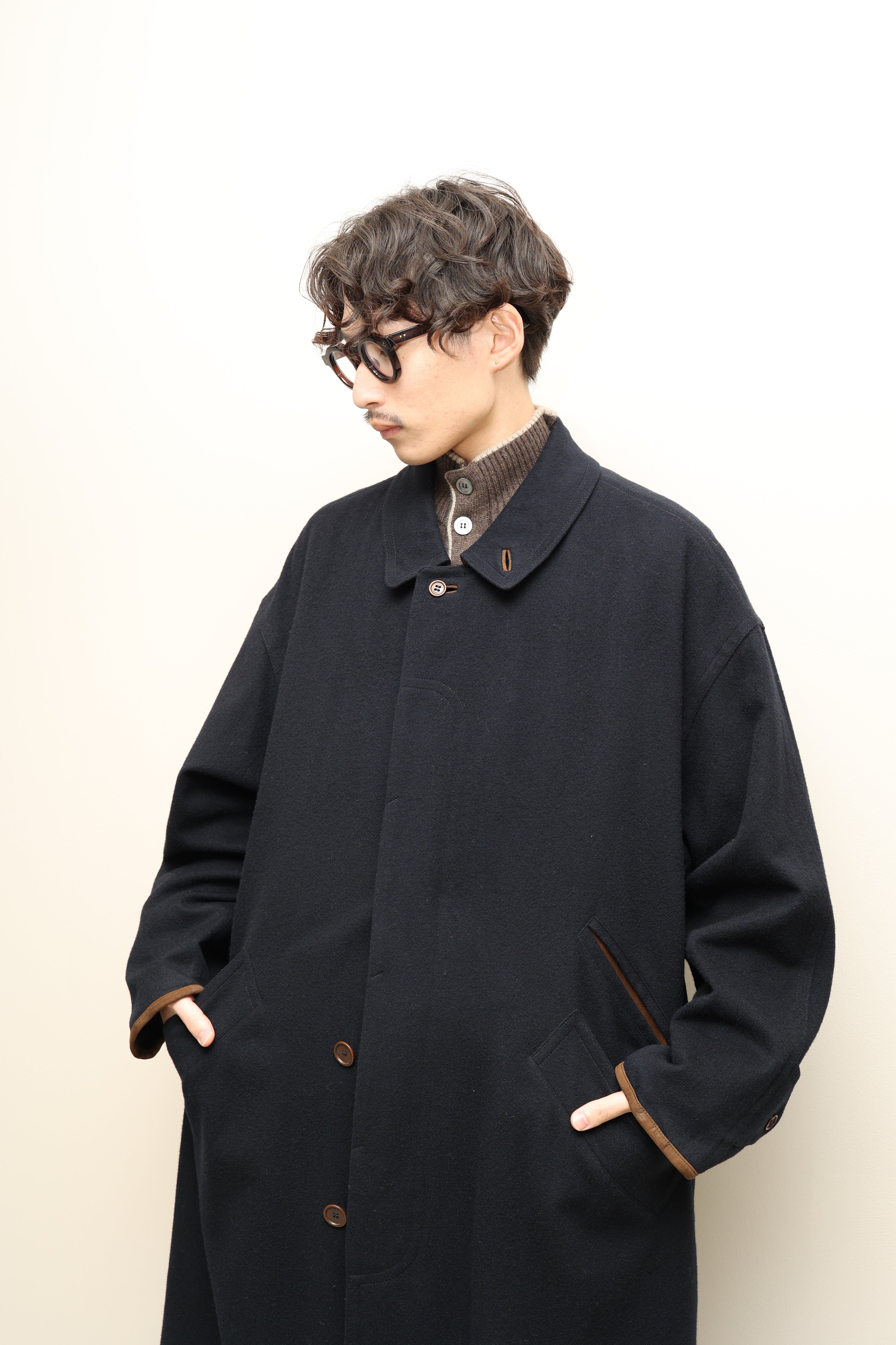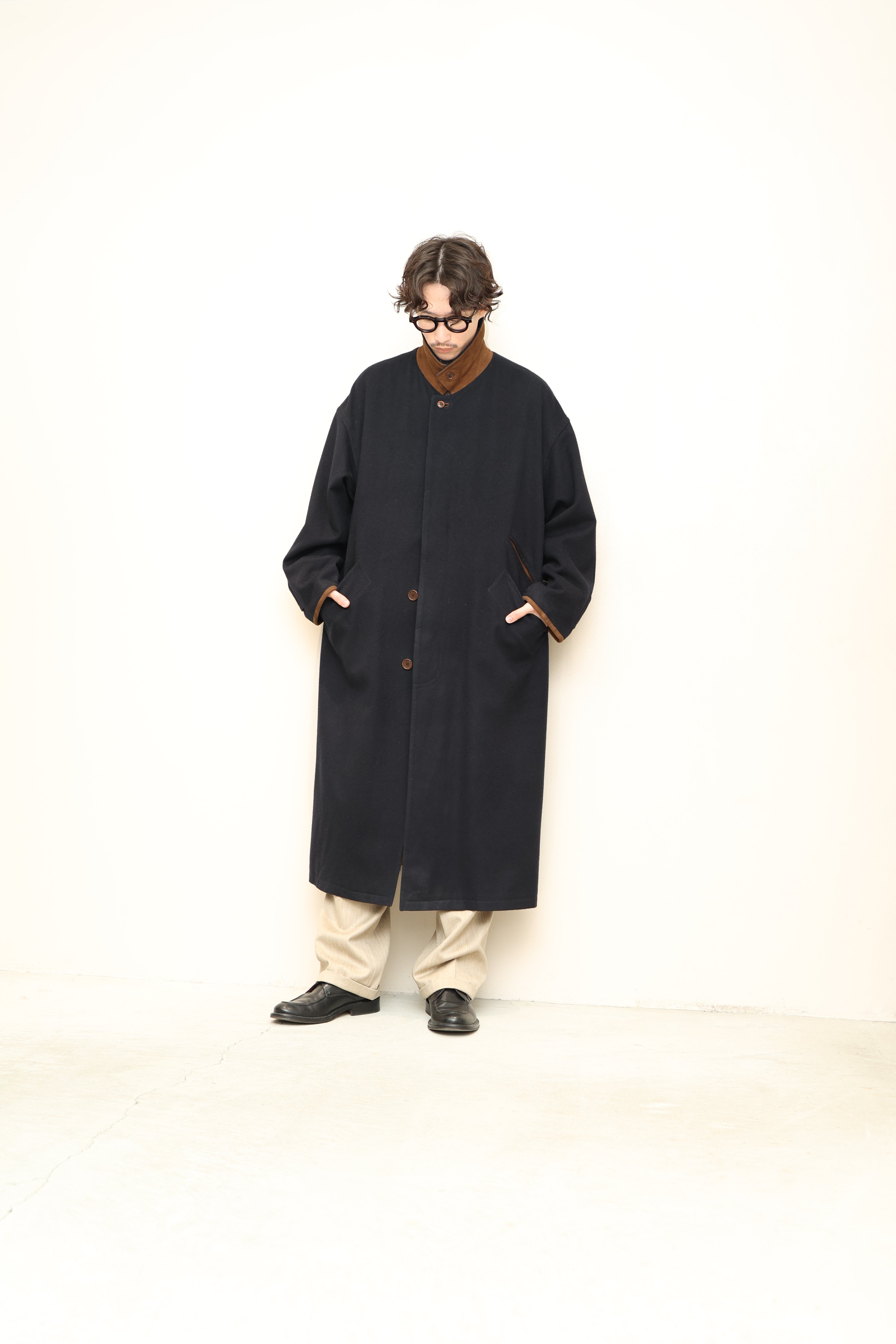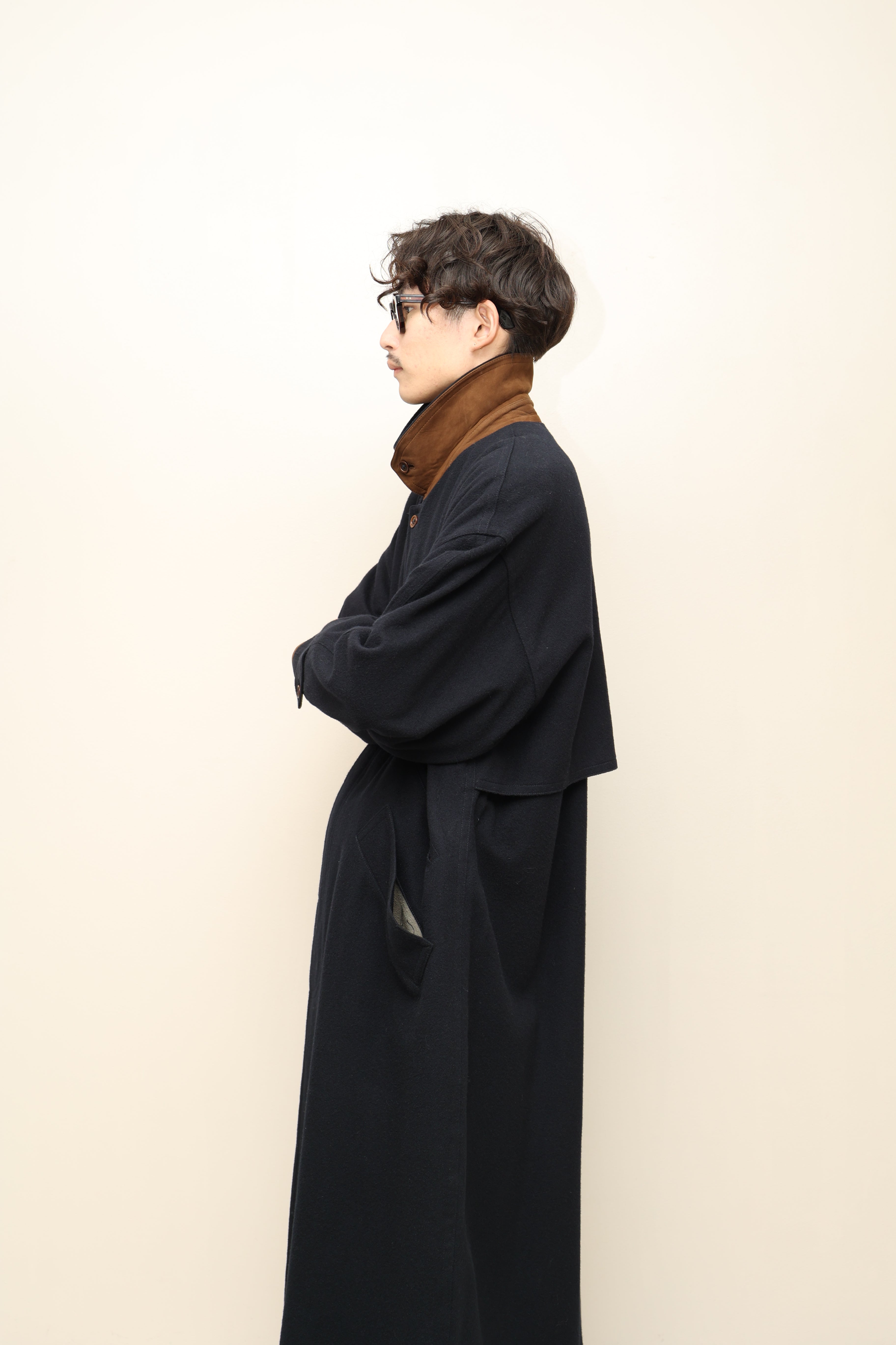 c90's European label - 2-way leather collar, constructive coat