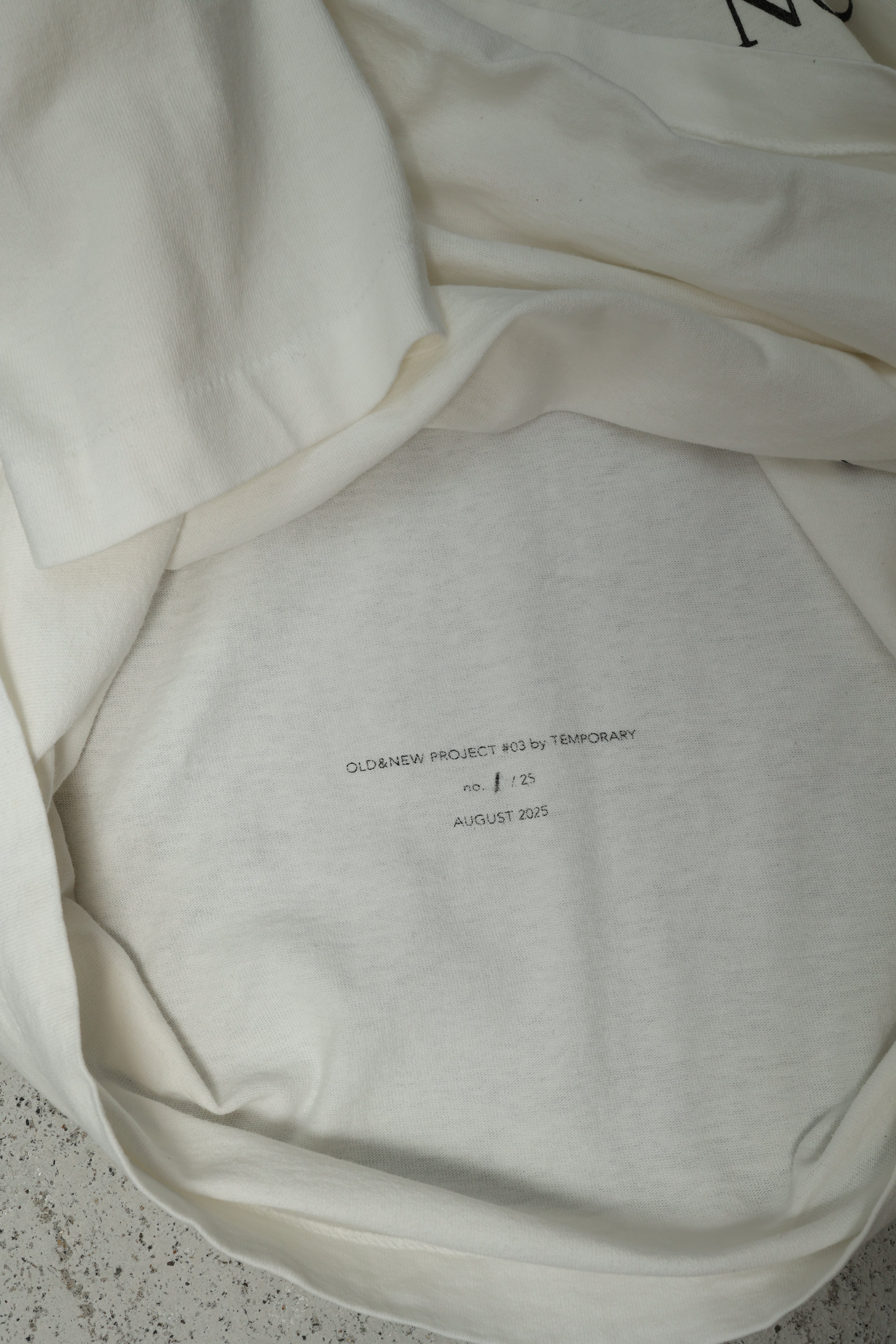 もう10年以上前、当時好きだった古着屋さんで買わせてもらった、「NOT OK」とだけプリントされていた古着のTシャツのアイデアをベースに、TEMPORARYなりのメッセージを込めてシルクスクリーンプリントでヴィンテージTシャツ25枚にプリントを施しました