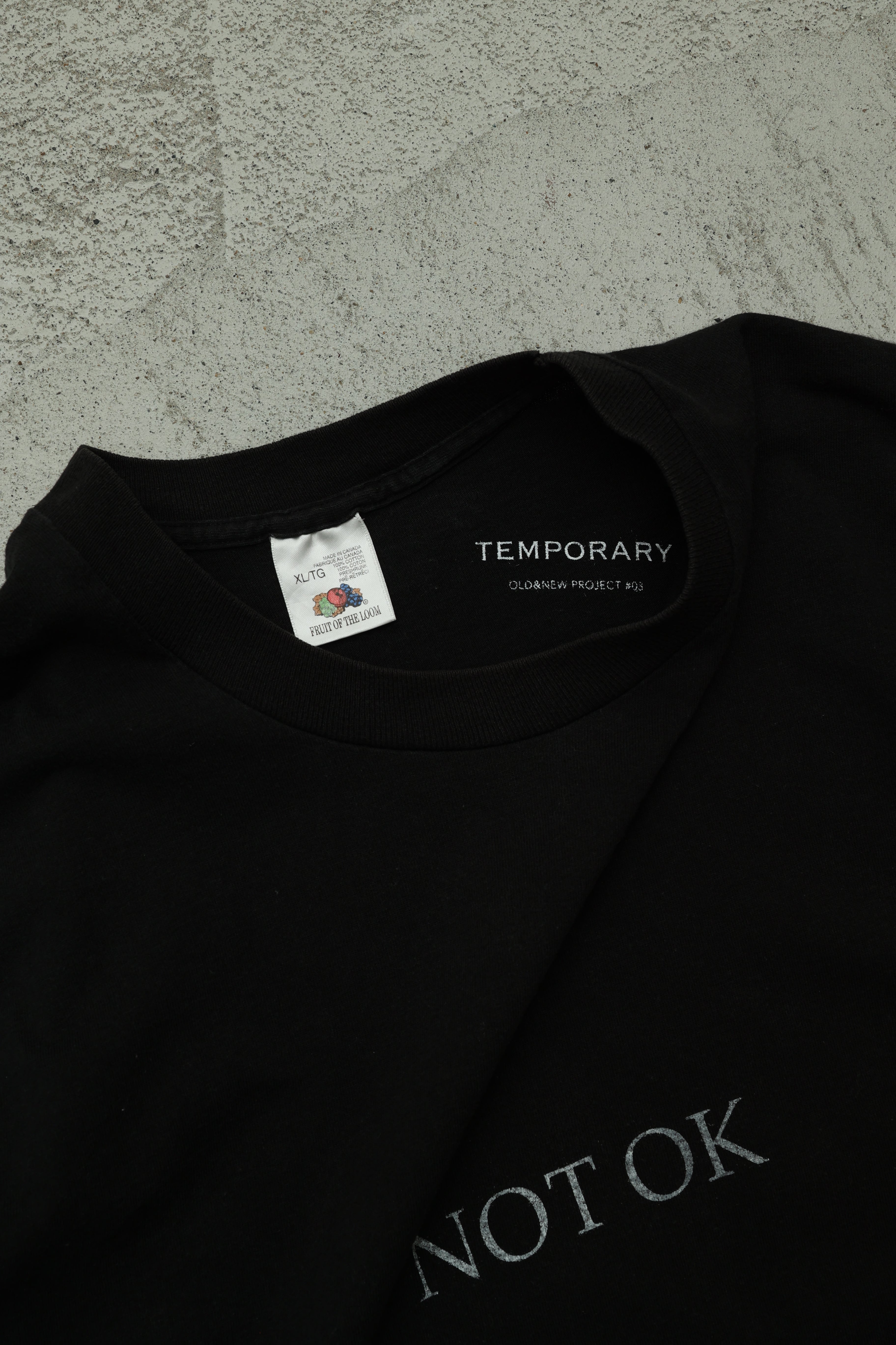 もう10年以上前、当時好きだった古着屋さんで買わせてもらった、「NOT OK」とだけプリントされていた古着のTシャツのアイデアをベースに、TEMPORARYなりのメッセージを込めてシルクスクリーンプリントでヴィンテージTシャツ25枚にプリントを施しました