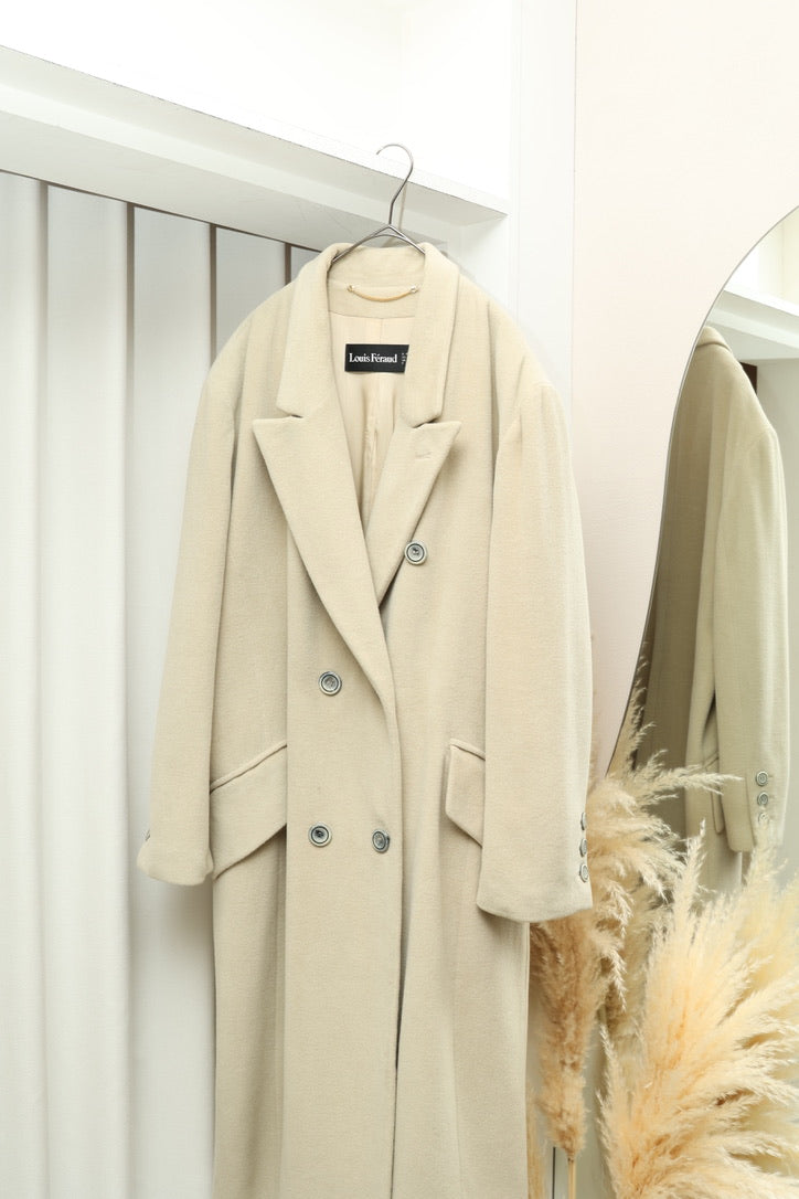 80-90’s Louis Féraud - cashmere /oversized double breasted mannish coat in ivory