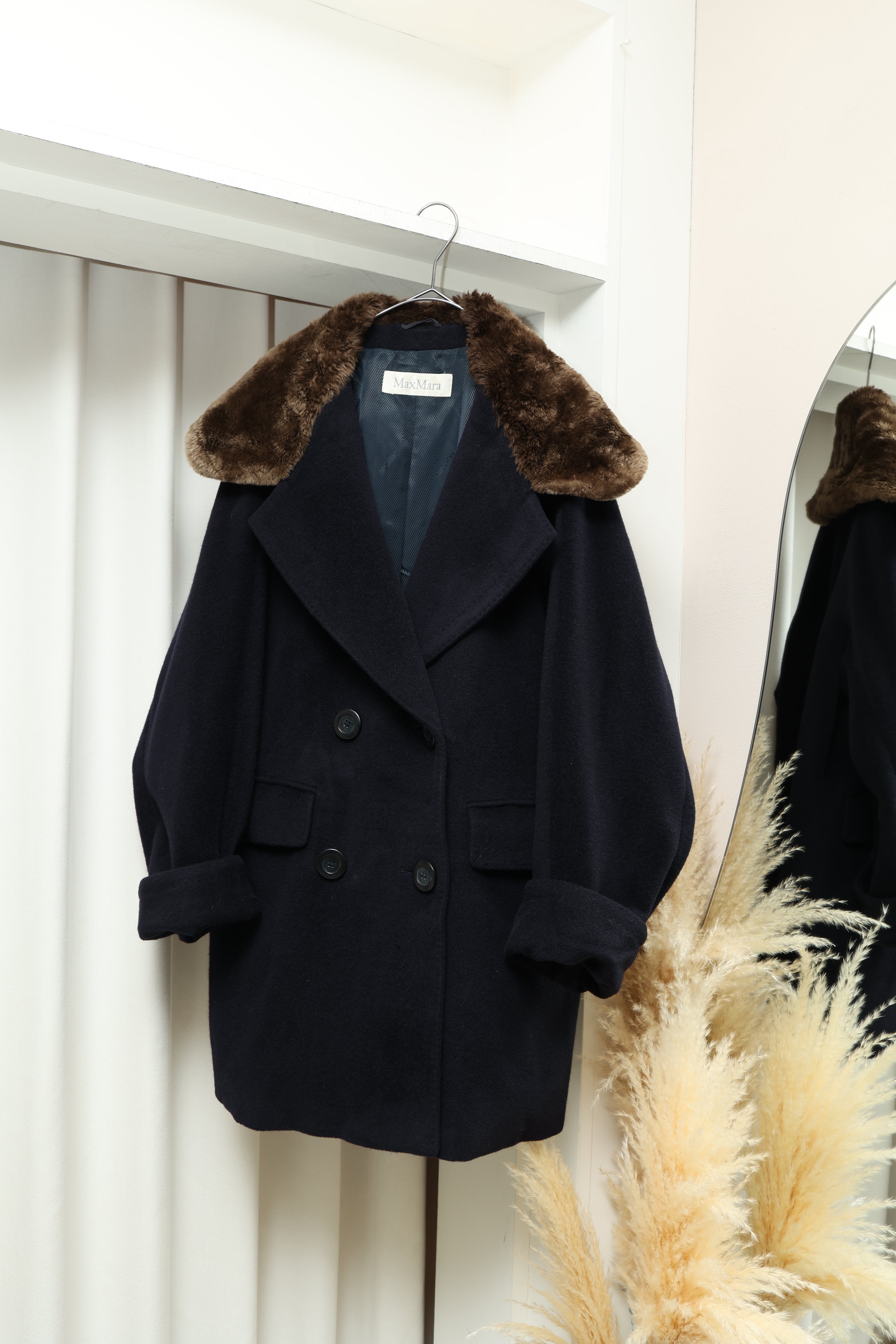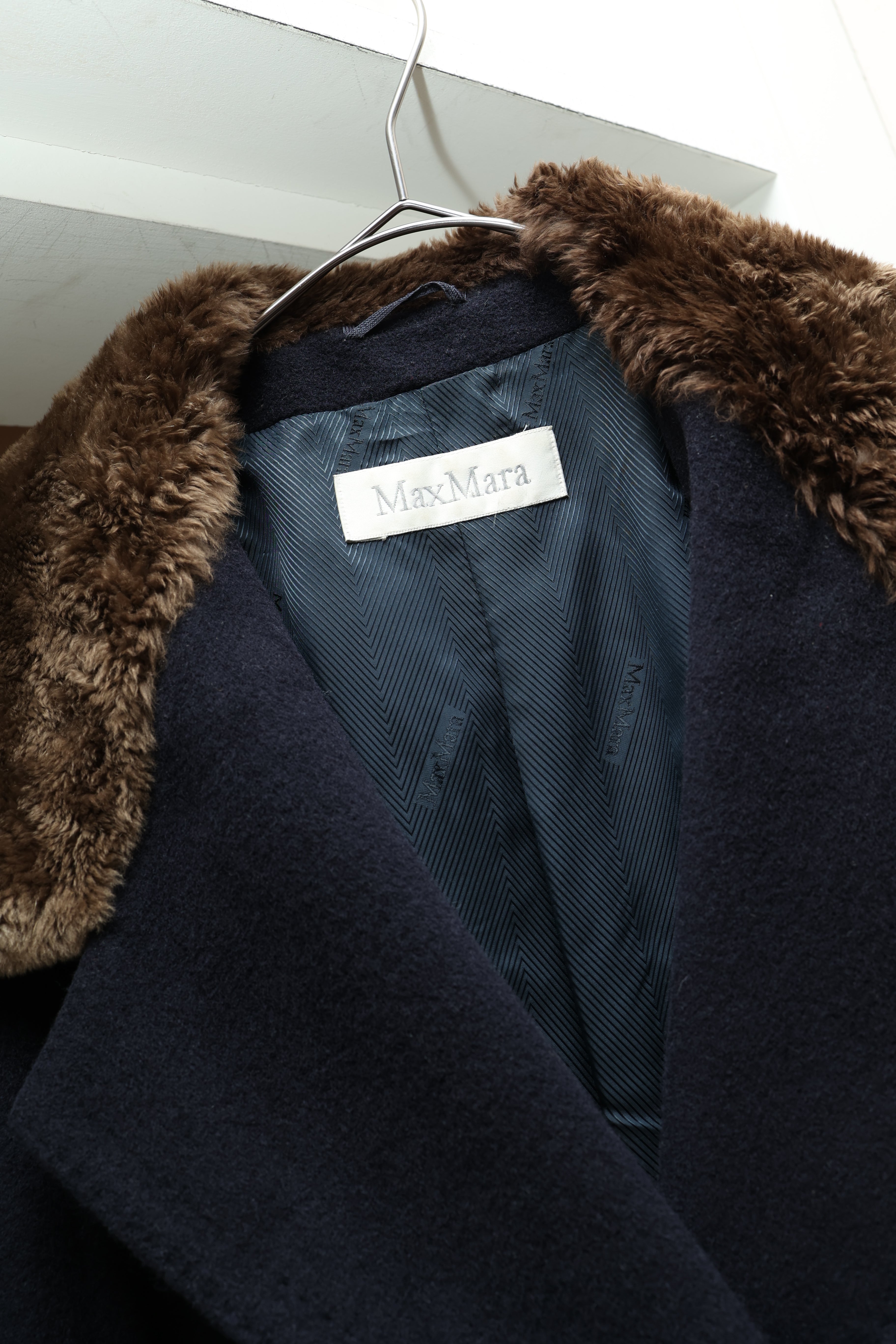 80-90's Max Mara - faux fur collar, wool/cashmere double hi- length coat