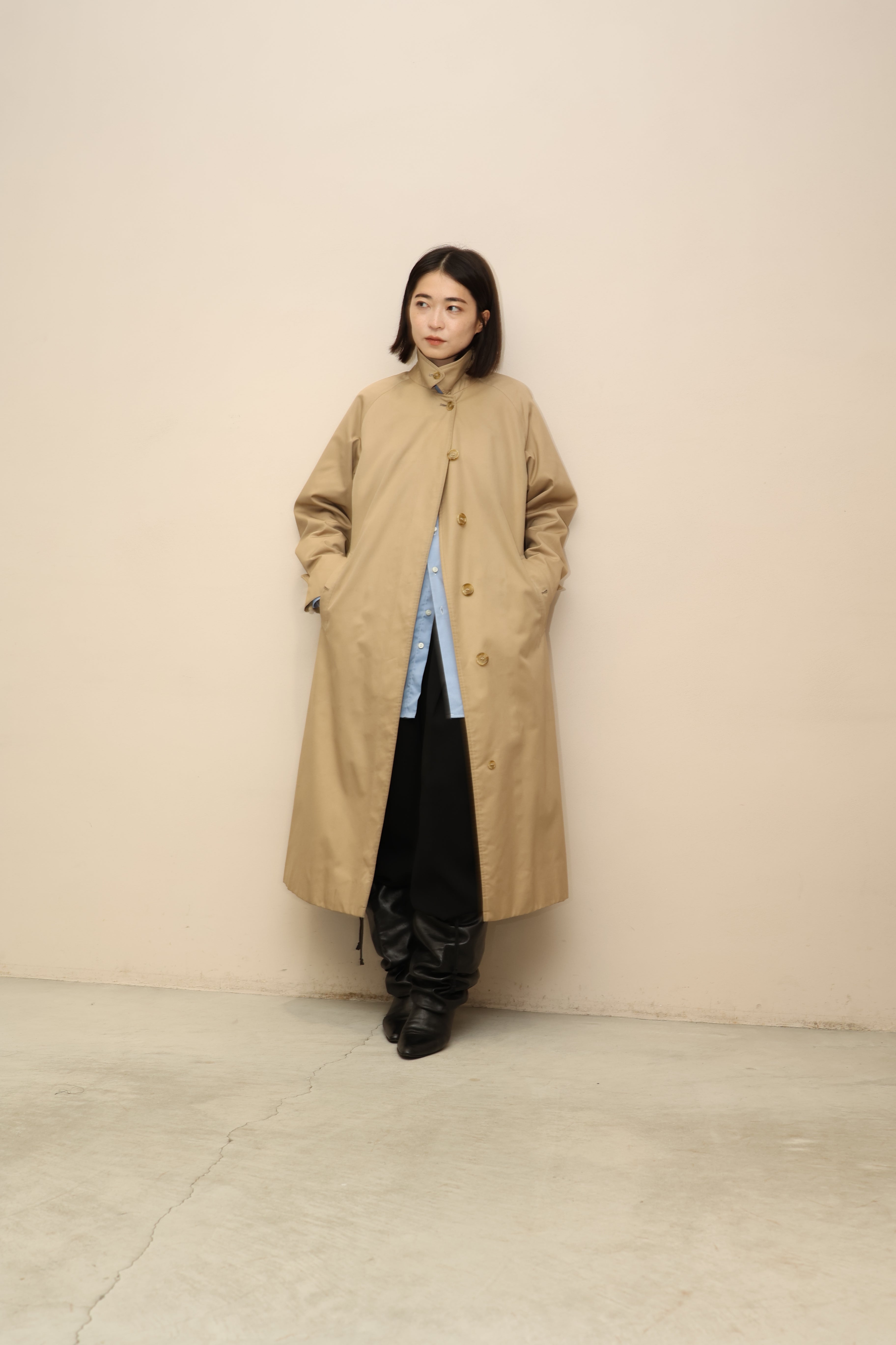 スタイリッシュなAラインが美しいシンプルなバルマカーンタイプは、トレンチよりも合わせるアイテムの幅が広がるのも嬉しいポイント